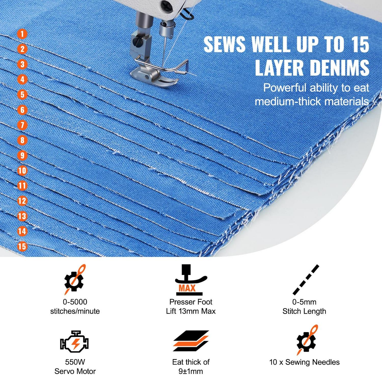 VEVOR Industrial Lockstitch Sewing Machine 550W Servo Motor with Stand 5000s.p.m
