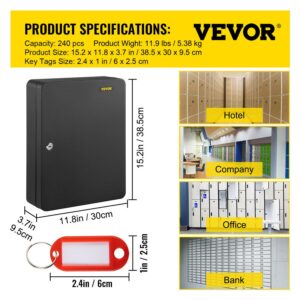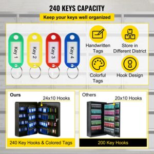 VEVOR Key Cabinet, Key Lock Cabinet Steel, Q235 Steel Key Storage, Wall Mounted Key Storage Box, Black Key Box Organizer for School, Office, Hotel, Bank (240 Positions)