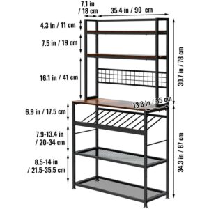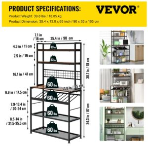 VEVOR Kitchen Bakers Rack with Cabinet 6-Tier Storage Shelf Rack 11 Hooks 65 H