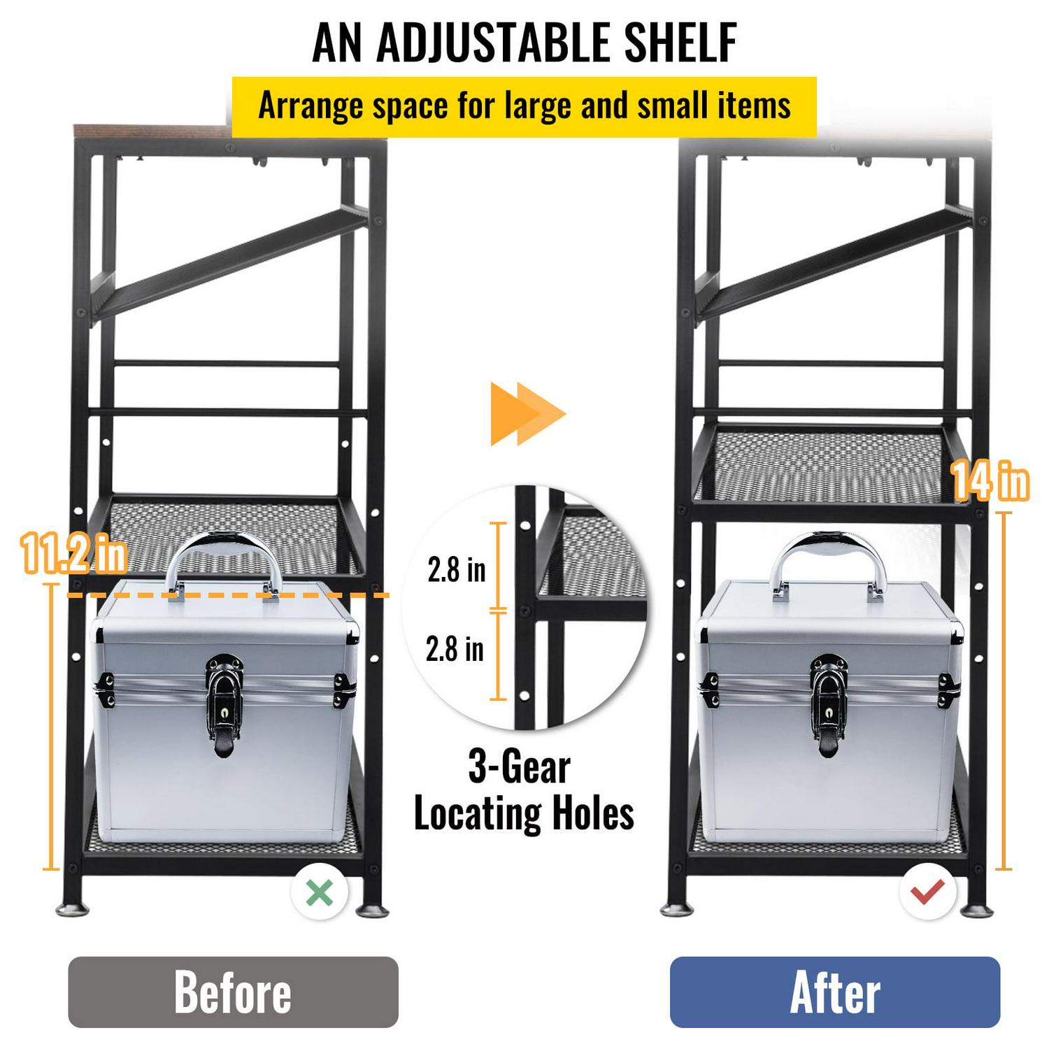 – Adjust for All Your Needs: The penultimate shelf can be automatically adjusted. You can choose the appropriate hole position according to the height of the items you want to place (Adjustable Length: 7/14 cm). It goes beyond just storing ingredients and utensils. There is more than enough space to store your favorite wine too.