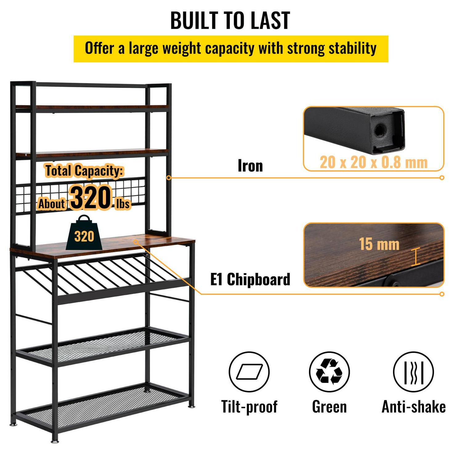 – Stability Comes First: The kitchen baker is made of 15 mm thick chipboard and 20 x 20 x 0.8 mm iron pipe, which can ensure long-term stability and durability. Its high-quality material enables it to bear more of your daily necessities without shaking or tilting during use. Total bearing capacity: About 320 lbs. A ton of support in the kitchen is a must.