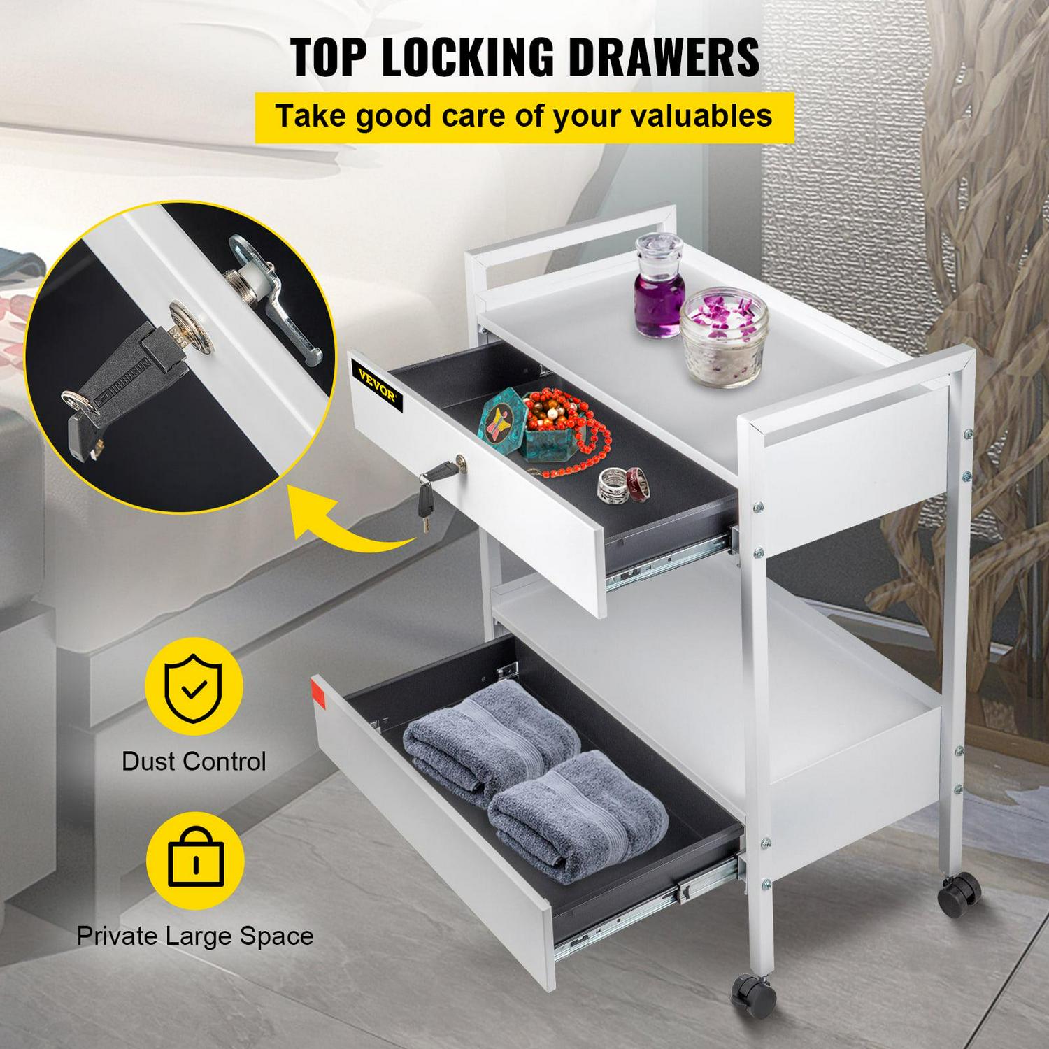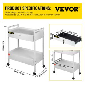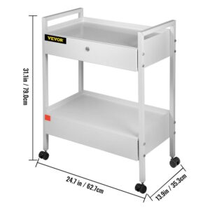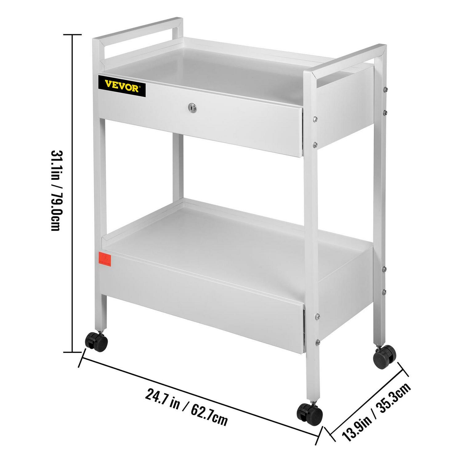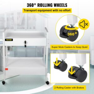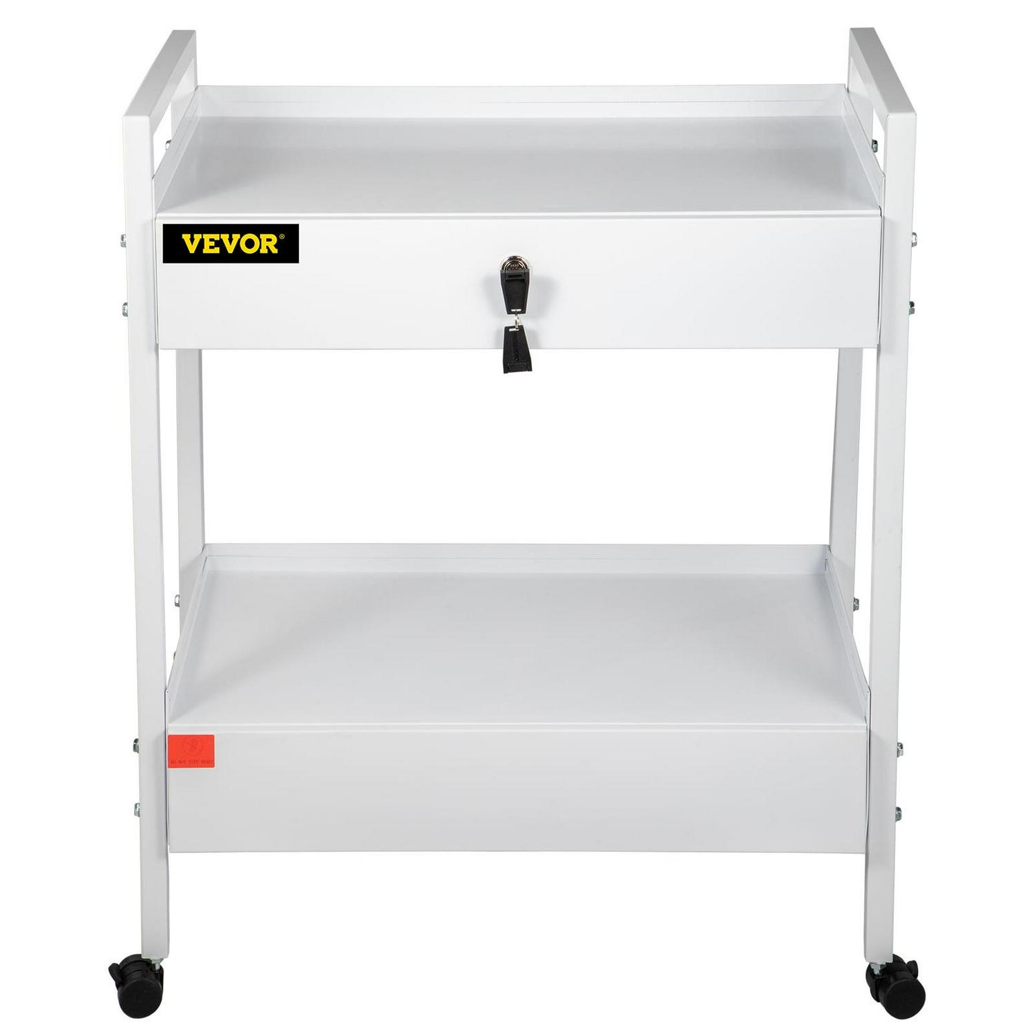 VEVOR Lab Cart, 2 Tiers Lab Trolley, Steel Lab Utility Cart, 360 Rolling Lab Cart, Locking Drawer Stainless Steel Lab Cart, Iron Frame Laboratory Cart, White Paint Lab Serving Cart for Laboratory