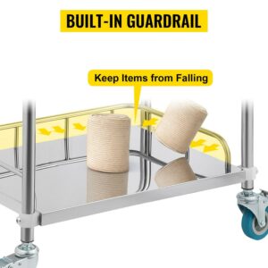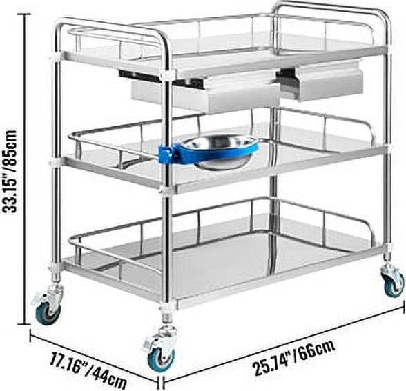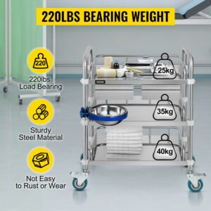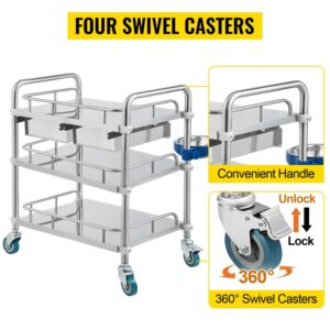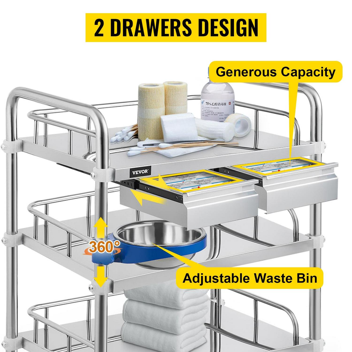 VEVOR Lab Cart 3 Layers Dental Cart Double Drawers Stainless Steel Cart 1 Refuse Basin Lab Utility Cart w/Silent Omnidirectional Wheels Stainless Utility Cart for Laboratory Hotel Restaurant Home Use
