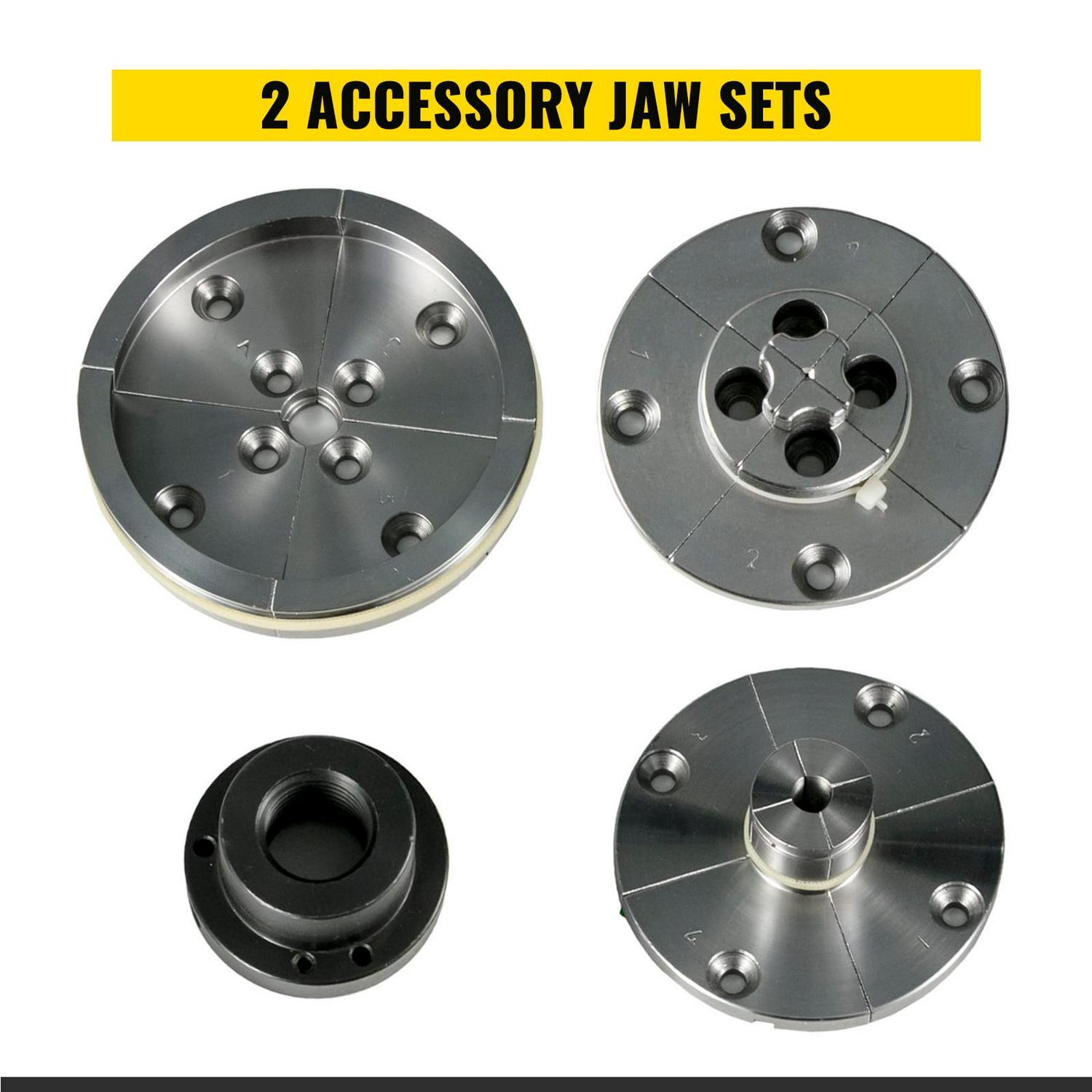– A SET OF COMPLETE ACCESSORIES – This complete lathe chuck set include two jaws set and a set of installation tools, two deformation sleeve,which bring much convenience for your operation.