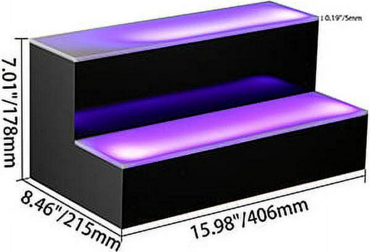 – 44-KEY RF REMOTE CONTROL – With the 44-key RF remote control, you can perform a series of settings on this 2-step 16″ LED-lighted liquor bottle shelf, which will be illuminated by the built-in LED strip lights in 20 static colors with brightness & speed adjustment. Besides, 4 DIY modes are also available for you, dotting your room with a sense of rhythm. How long it jumps or fades is also entirely up to you.