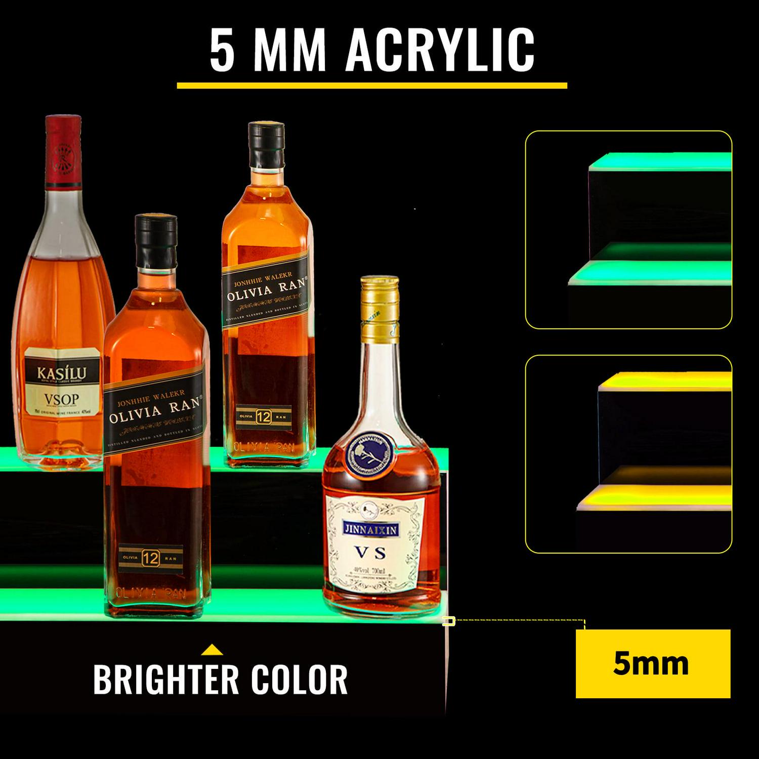 – DURABLE ACRYLIC SURFACE – Made of premium acrylic material, this lighted liquor bottle display shelf emphasizes good hardness and transparency. The former ensures that the liquor shelf is resistant to wear and breakage, while the latter can show you brighter colors for a better display effect. Besides, the smooth acrylic surface is also convenient for you to clean and maintain.