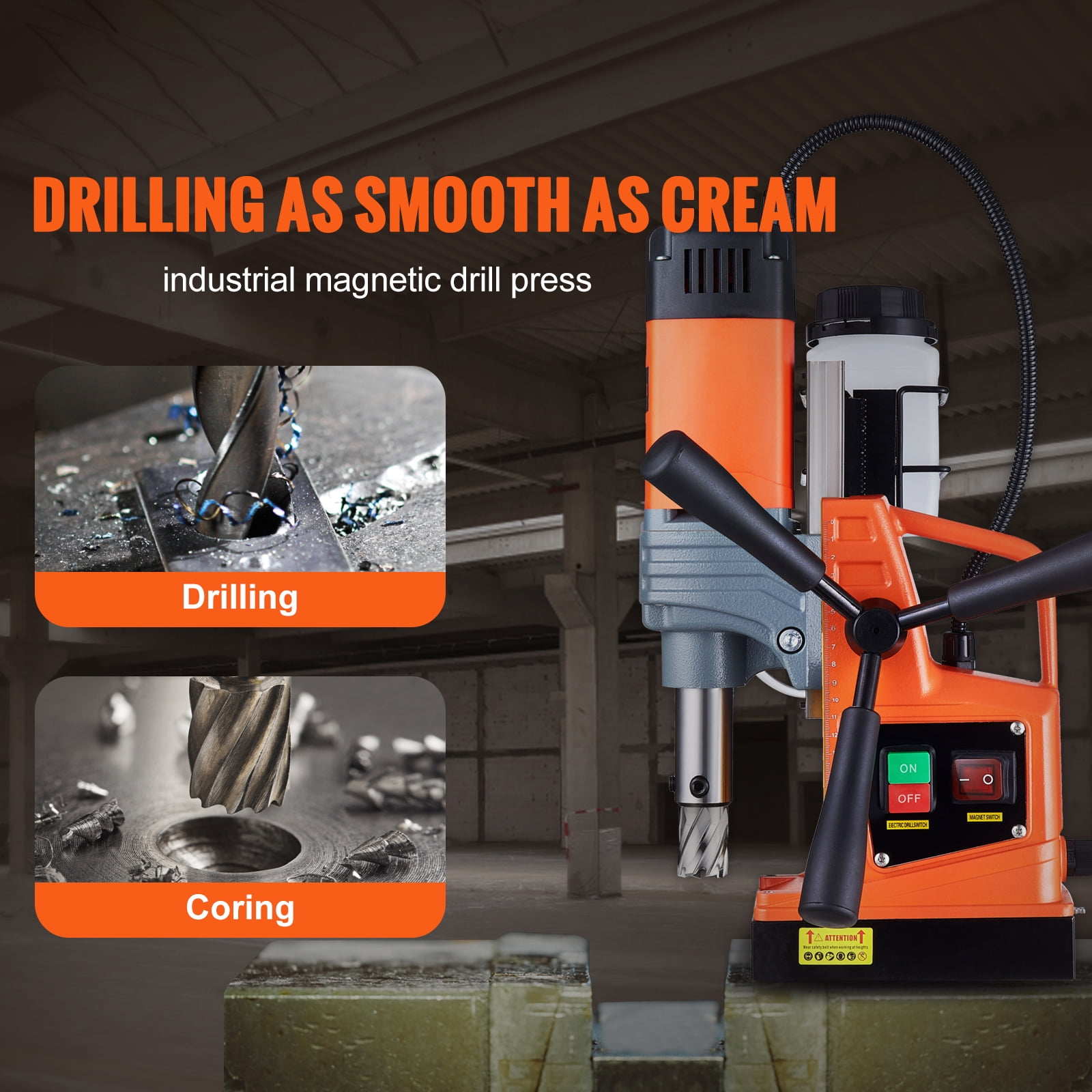 VEVOR Magnetized Drilling Device, Motor Power 1300W, Boring Scope 1.6 in, 2810 lbf Compact Electric Magnetic Drill Press, No-Load Speed at 810 RPM, Ideal for Metal Surface Drilling, Industrial and