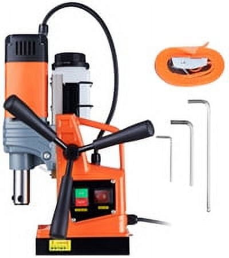 Product Description 1300W Electromagnetic Drill Press The VEVOR 1300W Electromagnetic Drill Press is a reliable and efficient tool for drilling precise and burr-free holes on steel or iron surfaces. Crafted with premium alloy materials, this drill press offers exceptional durability and is suitable for various applications such as home assembly, industrial use, and steelwork. With a magnetic force of 13000N, it ensures a secure adherence to the workpiece, providing stability and accuracy during drilling operations. The laser marking feature allows for precise positioning, enhancing the overall efficiency of your work. Additionally, the inclusion of a coolant device helps to maintain optimal drilling conditions, preventing overheating and prolonging the lifespan of the drill press. Designed with user-friendliness in mind, this drill press offers easy operation and control, making it suitable for both professionals and DIY enthusiasts. Its wide range of applications and reliable performance make it a top-level magnet in the world of drilling tools. Invest in the VEVOR 1300W Electromagnetic Drill Press and experience the power, security, and durability it brings to your projects. Enhanced Drilling Efficiency Experience powerful performance with our VEVOR mag drill. Equipped with a 1300W motor and an impressive 810rpm speed, this mag drill significantly enhances drilling efficiency, making it perfect for projects that require extensive drilling. Enjoy more stable operation, greater precision, and improved comfort during use. Accurate Depth Control Monitor and control the drilling depth with ease using the precision depth scale of our VEVOR mag press. The built-in scale allows you to ensure that each hole meets the exact size requirements. This feature is especially valuable for applications requiring precise depth control, such as machining and construction installation. Exceptional Rigidity Experience exceptional rigidity with the durable dovetail guide rails of our VEVOR magnetic drill. The dovetail guide rail structure offers outstanding stability, capable of withstanding heavy cutting forces and torque. Even when tackling hard materials or demanding drilling tasks, this magnetic drill maintains its overall stability and performance. Reliable Overload Protection No need to worry about unexpected overloads damaging the equipment. Our mag drill is equipped with overload protection, reducing maintenance and replacement costs. This feature is especially beneficial for professional users and businesses that frequently use a magnetic drill, saving both time and money in the long run. Unwavering Stability Experience unwavering stability during inverted, vertical, or side drilling tasks with our mag base drill. With an impressive magnetic adhesion of 2810 lbf (12500N) and an included security strap, this mag base drill provides exceptional stability. Minimize vibration and ensure both precision and reliability in your operations. Expertly Designed for Stability Handle even the most complex or time-consuming tasks with ease using our mag drill. The low center of gravity and stable base design ensure stability and prevent wobbling. Gain confidence in your drilling operations with this expertly designed magnetic drill. Specifications Item Model Number: 8840 Shank Type: Weldon Shank Maximum Load Power: 1300W Maximum Magnetic Force: 2810 lbf / 12500 N No-Load Speed: 810 rpm Max. Boring Diameter (Coring Drill): Φ1.6 in / 40 mm Max. Coring Depth: 2 in / 50 mm Max. Boring Diameter (Twist Drill): Φ0.1-0.6 in / 3-16 mm Max. Boring Depth (Twist Drill): 3.9 in / 100 mm Max. Travel Distance: 8.3 in / 210 mm Net Weight (Including All Accessories): 24.3 lb / 11 kg Package Content 1 x Coolant Tank + Stand 1 x Coolant Tube 1 x Rope 3 x Hex Keys 3 x Hand Cranks 1 x User Manual