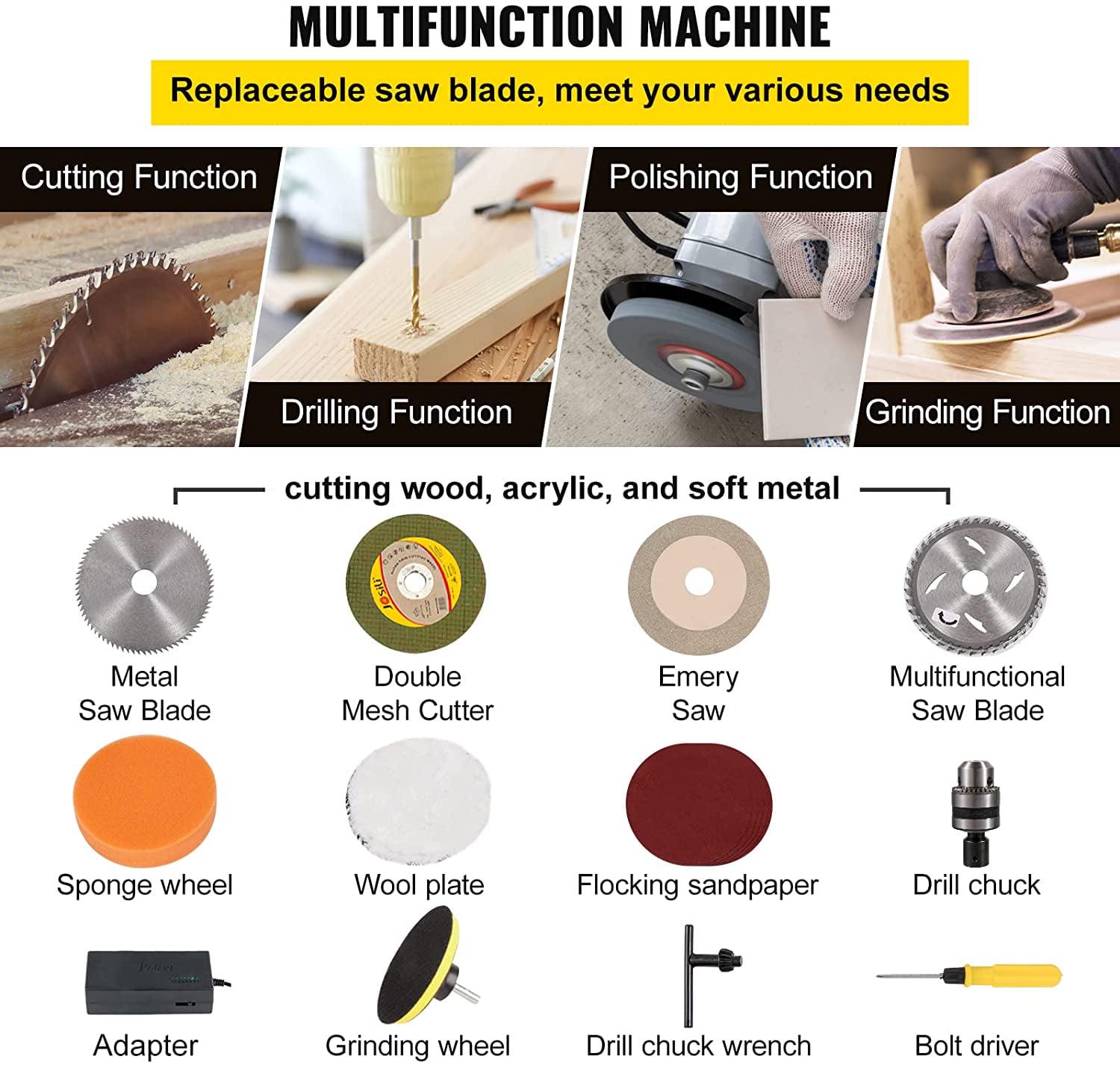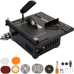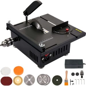 – Functional Diversification: Our mini table saw allows for versatile use that can be used for small wooden stick cutting, acrylic cutting, aluminum alloy cutting, model material cutting, plastic cutting, etc. It applied to DIY craft workshops, creative research, and development.
