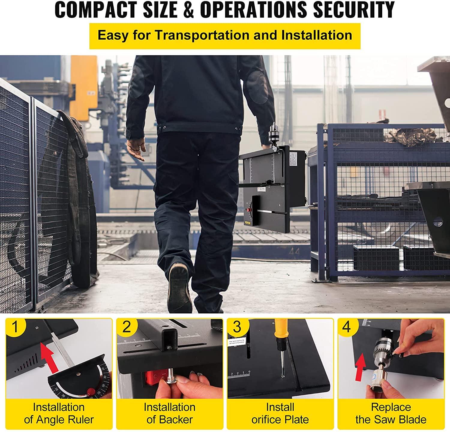 – Portability and Practicality: This hobby table saw 3 inches is compact which weighs 11.5 lbs / 5.2 kg, easy to transport, and storage. The installation procedure is brief and swift, so this product is very practical. No worries for home use or carry out.