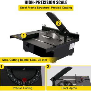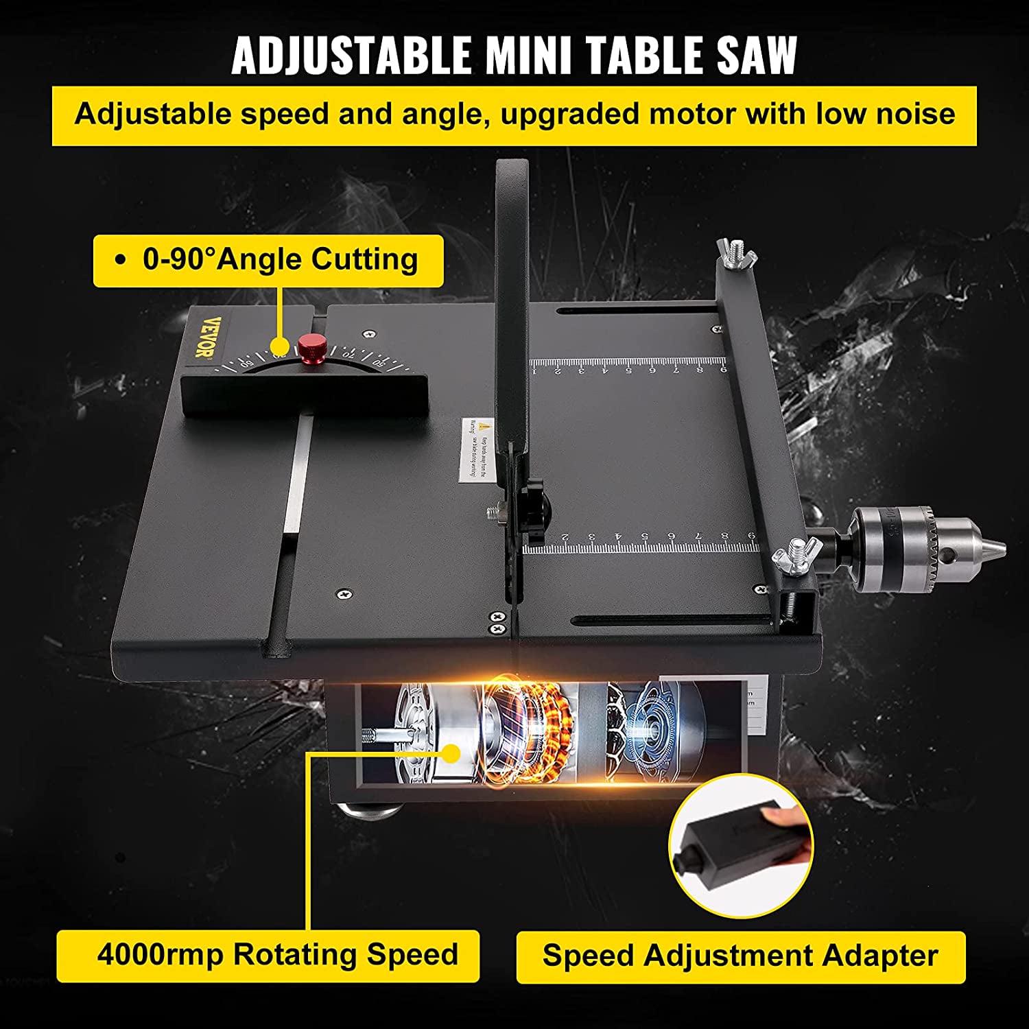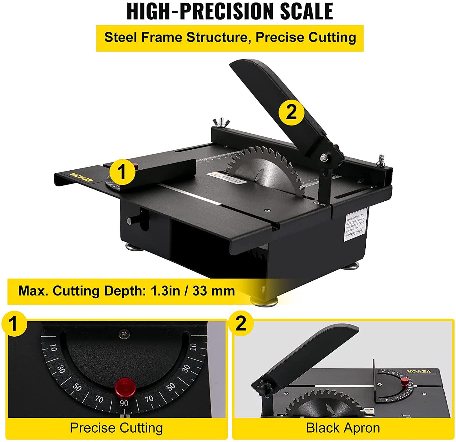 VEVOR Mini Table Saw, 200W Hobby Table Saw for Woodworking, 0-90 Angle Cutting Portable DIY Saw, 4000RMP Multifunctional Table Saws, 1.57in Cutting Depth Mini Precision Table Saw with Black Apron