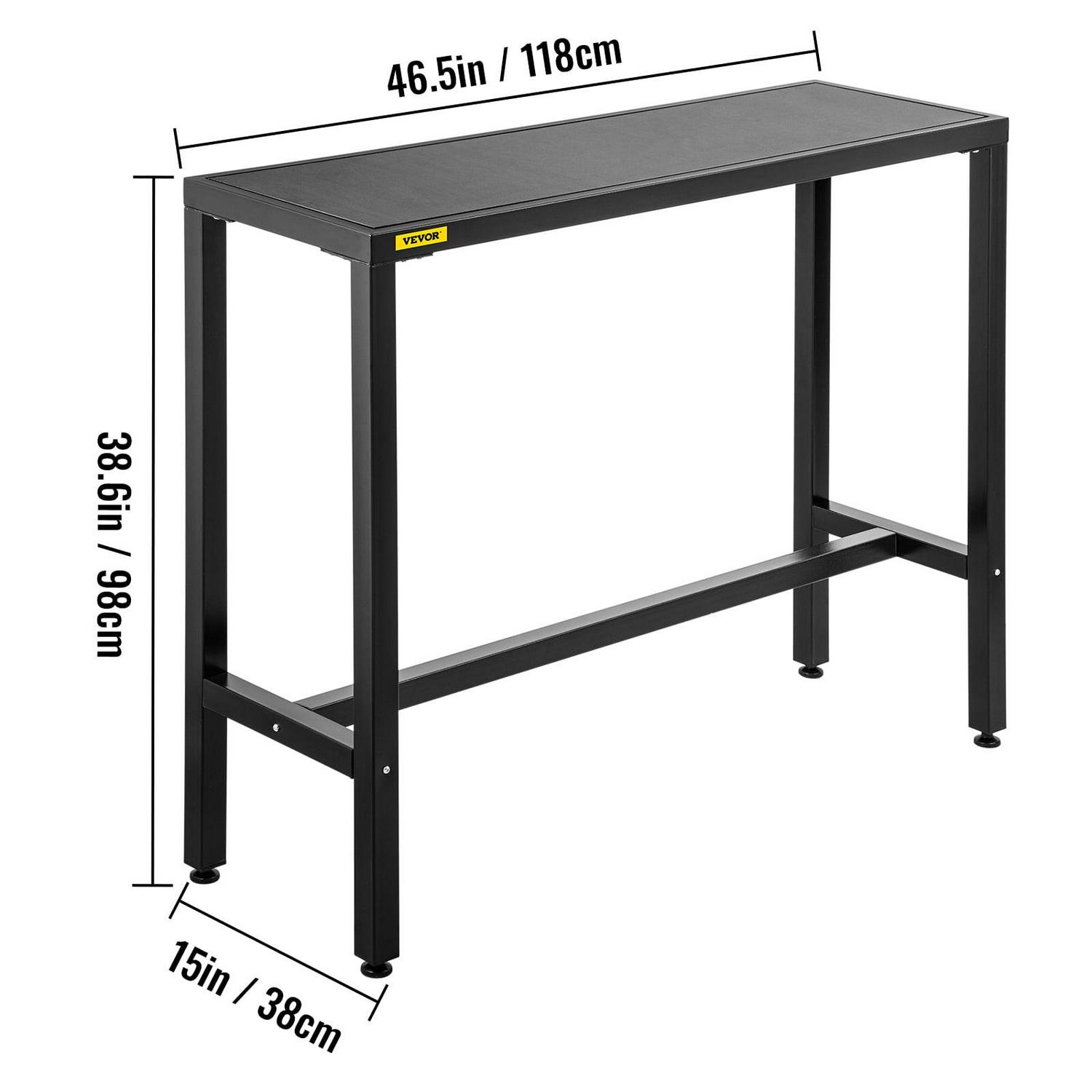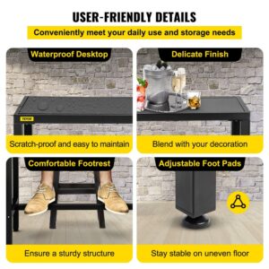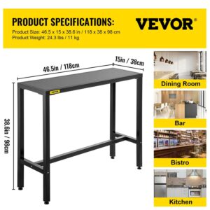 VEVOR Outdoor Bar Table, 36.5 L x 15 W x 38.6 H, Narrow Rectangular Bar Height Pub Table, Sturdy Metal Frame Tall Table Counter with Adjustable Feet, for Patio, Balcony, Dinning Room, Bistro, Garden