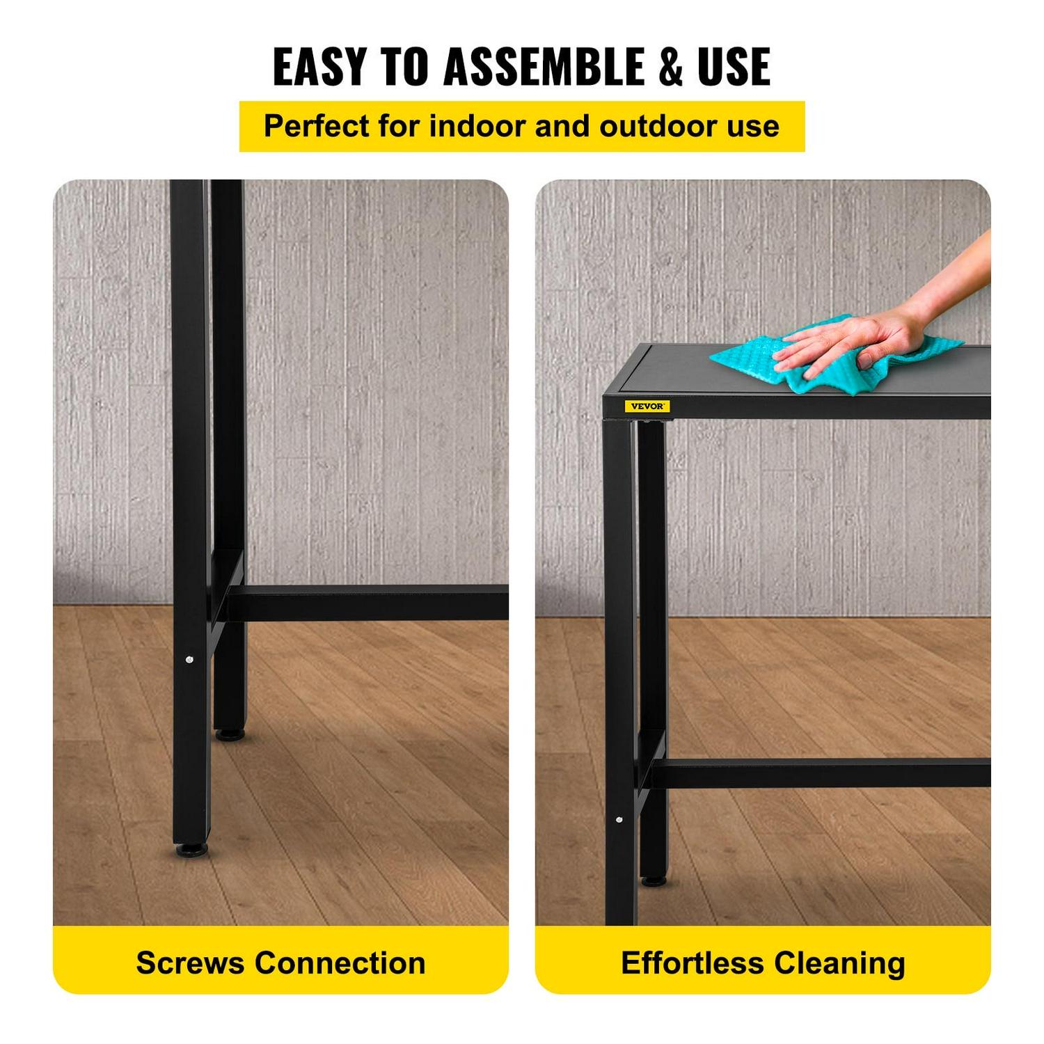 – Easy to Install & Maintain: Only a few minutes are required to assemble our bar top table. The fittings and instructions are all included in the package for easy setup. The metal frame connected with screws is stable enough and easy to maintain. Just clean it with a damp cloth.