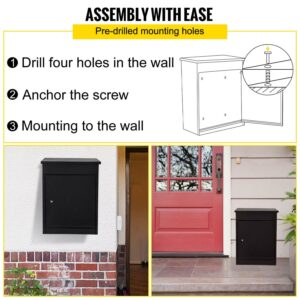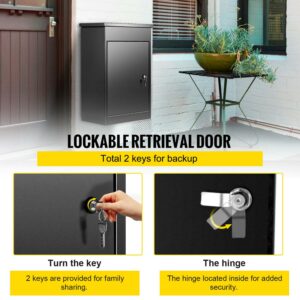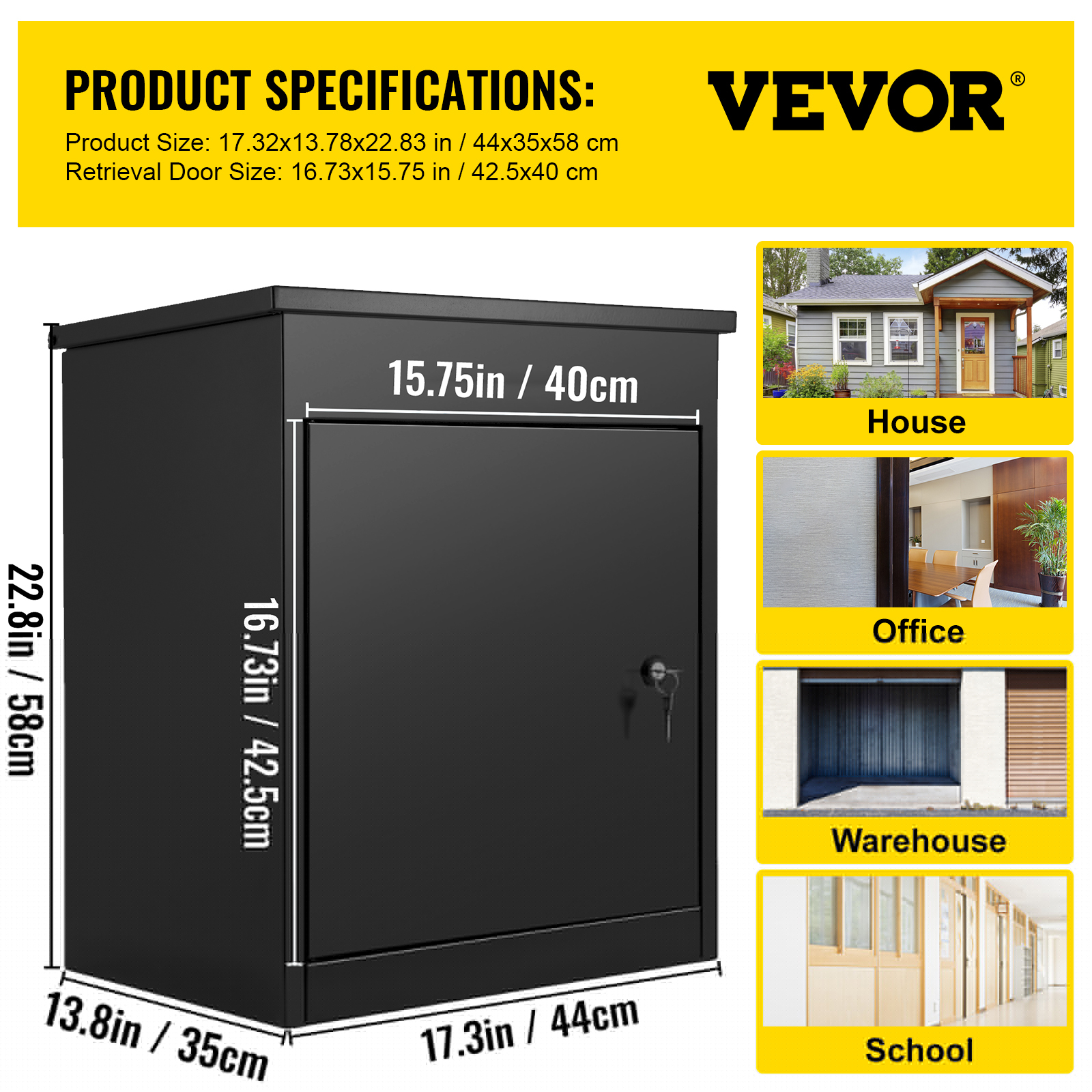 VEVOR Parcel Delivery Box, Large Package Drop Box 17.32×13.78×22.83in Mailbox, Wall Mounted Express Mail Package Delivery Box with Lockable Storage, Black
