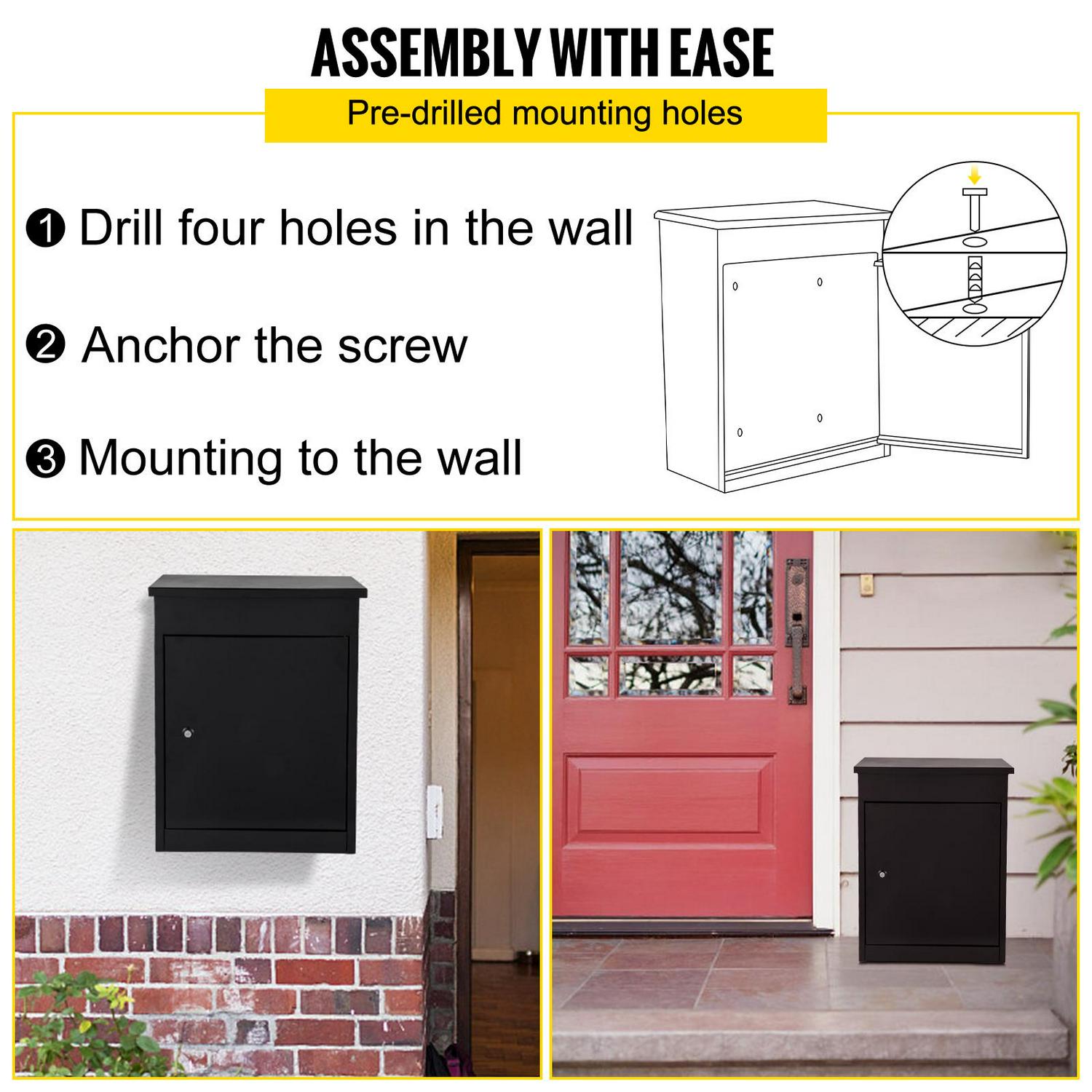 – DIY INSTALLATION IN MINUTES – The parcel box comes with pre-drilled holes and 4 mounting screws, allowing it to be anchored easily to the wall, which only takes you several minutes.