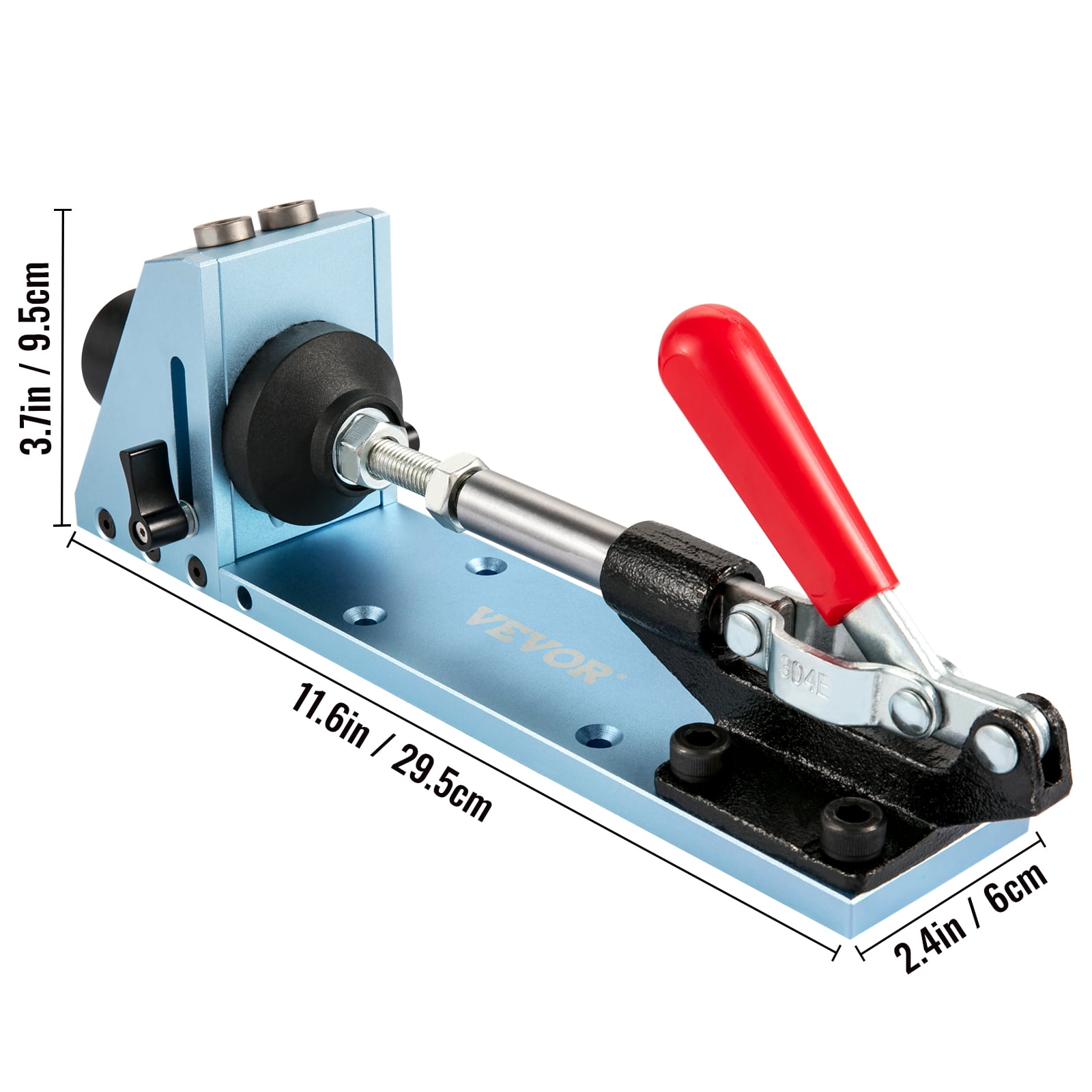 Brand Introduction VEVOR is a leading brand that specializes in equipment and tools. Along with thousands of motivated employees,VEVOR is dedicated to providing our customers with tough equipment & tools at incredibly low prices. Today, VEVOR has occupied markets of more than 200 countries with 10 million plus global members. Why Choose VEVOR? 1.Tough Quality Assurance 2.Incredibly Low Prices 3.Fast & Secure Delivery 4.30-Day Free Returns 5.24/7 Professional Customer Service Product Description VEVOR Aluminum Pocket Hole Jig System M4 Inches and Metric Scale & Regulating Depth Setting & Complete Set Built-In Precision Scale All measurement markings are included on the jig to reference how thick your project materials are direct. Markings are in both imperial and metric units. Adjustable Depth Setting You can quickly adjust the height of the slider according to the thickness of the board. Loosen the thumbscrews and set them to the appropriate thickness. 2 Clearance Holes The woodworking pocket hole jig features 2 chip removal holes to reduce the bits of wood in the air for dust-free drilling. Quick Fixture The angle pocket hole jig has a built-in clamp that secures your board tight against the jig punch to ensure a smooth, clean press and avoid any wood splintering. Quenched Hardened Aluminum The drill jig is made of high-strength hardened steel and positioned for accuracy and consistency time after time on the work for constancy and rust resistance. Removable Fixture This multipurpose pocket hole jig is an actual 2-in-1 system. Besides the jig system being detachable, the additional slider holder can be used for longer boards that are more flexible. Specifications Material: Anodized Aluminum Alloy Main Body Color: Light Blue Model: Pocket Hole Jig Set Scale Unit: Metric & Imperial Number of Drilling Holes: 2 Number of Chip Removal Holes: 2 Net Weight: 6.8 lbs / 3.1 kg Item Dimensions (L x W x H): 11.6 x 2.4 x 3.7 inches / 295 x 60 x 95 mm Package Content 1 x Pocket Hole Jig 2 x Extended Rods 1 x Dust Spout Connector 1 x Drill Bits 1 x Stop Collar 30 x M4 Screws 10 x Pocket Hole Plugs 1 x Hex Key