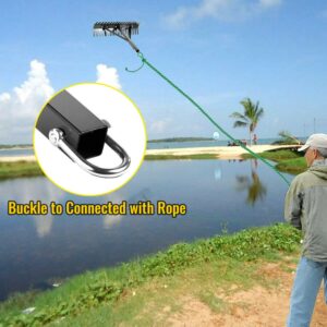 – EASY TO USE: With a metal buckle, this aquatic weed rake is easy to strongly connected with the long rope. All you need to do is throw the rake with rope and pull it back, and then you can get a clean and beautiful lake or pond without weeds.