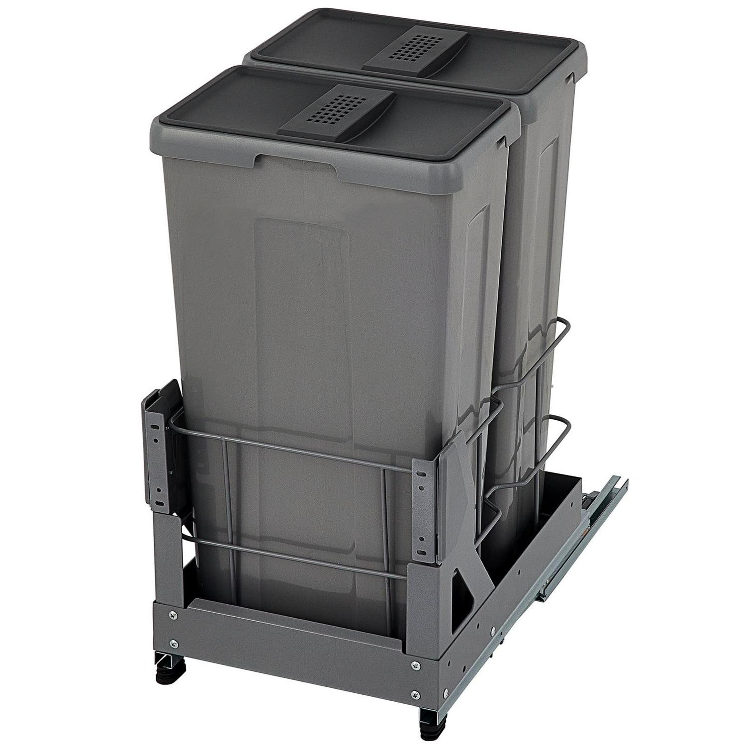 – Large Waste Container: Our pull-out garbage can, with double 29Qt / 27L large containers, lets you get rid of the trouble of taking out the garbage frequently, and can perfectly satisfy your home and commercial demands. The double-bin design can also assist in sorting waste. Besides, each bin has a dual-opening lid, which can reduce odor from garbage. You just need to open the small lid to throw garbage away and lift the whole lid only when replacing garbage bags.