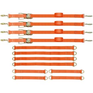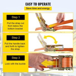 VEVOR Ratchet Tie Down Strap, 15.6ft x 2in Polyester Ratchet Strap 4000 lbs Working Load, 12 PCs Heavy Duty Car Strap w/ Double Hooks, Car Tie Down Strap with Chain Anchors, Security Fastening, Orange