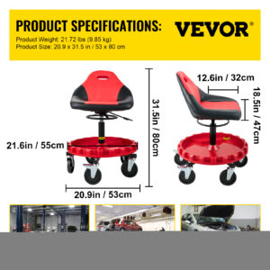 With a pneumatic cylinder design, the garage stool can easily adjust the height from 21″ to 26″ off the ground. The max. xx height allows you to use this stool with a desk.
