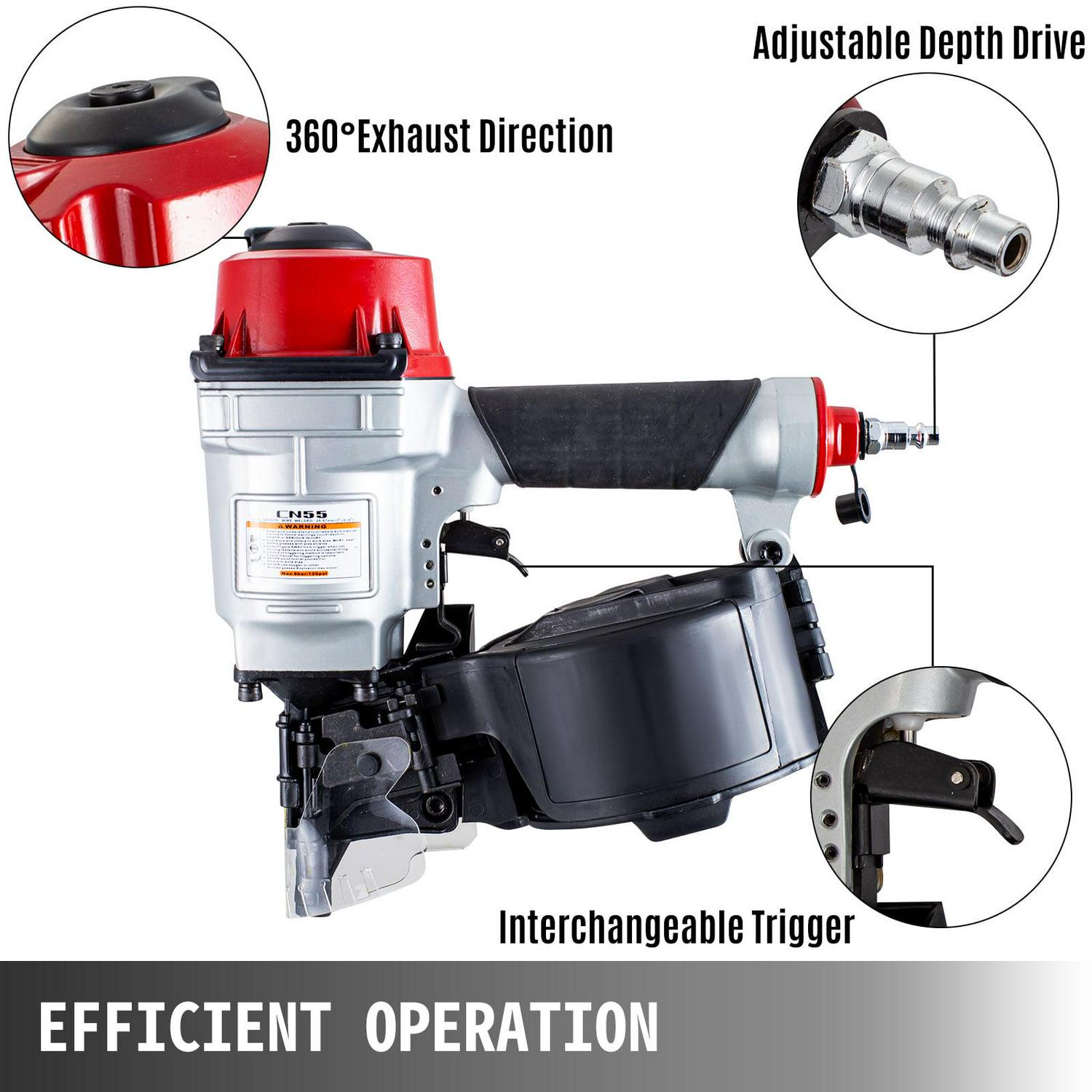 VEVOR Roofing Nail Gun CN55, Professional Coil Nailer from 1-Inch up to 2-1/4-Inch, Siding Nailer with Adjustable PC Magazine Coil Siding Nailer 15 Degree for Driving Roofing Nails Fast and Hard