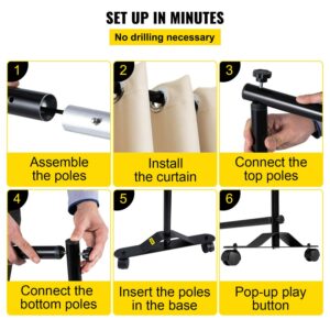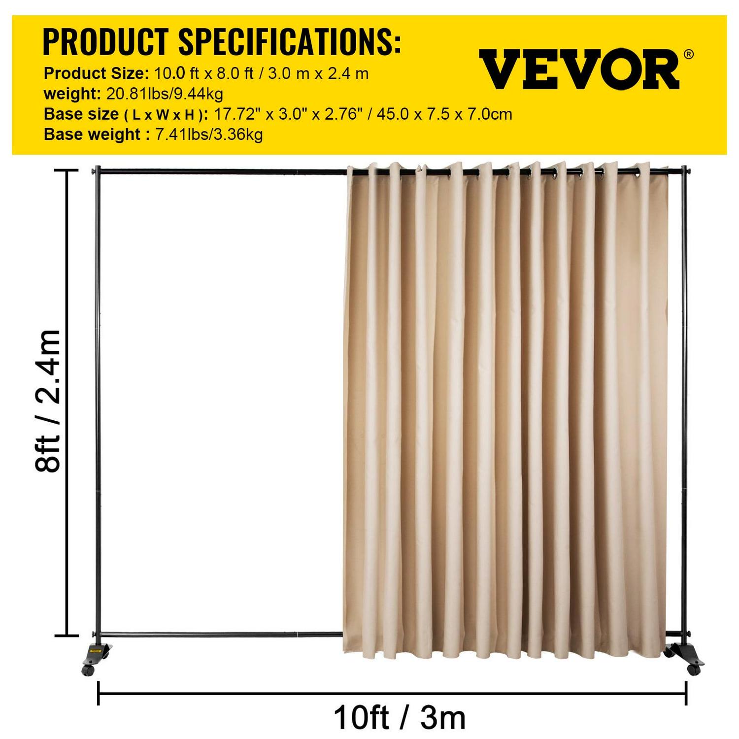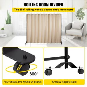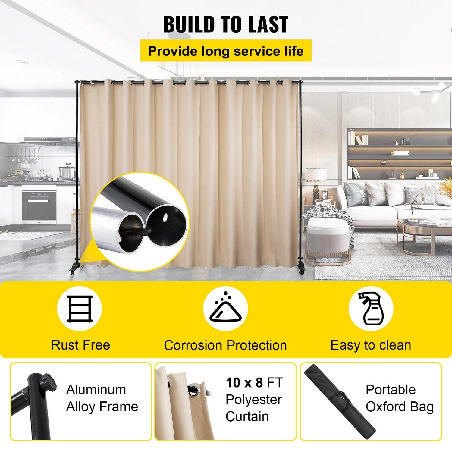 VEVOR Room Divider Kit, 8 ft x 10 ft, 4 Rolling Wheels Curtain Divider Stand, Aluminum Alloy Frame, Blackout Curtain and Portable Oxford Bag Included, Expandable Room Divider for Office (Beige)