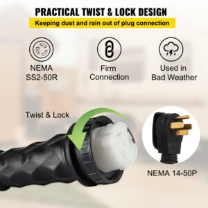 UL CA listed durable and reliable 6/3 + 8/1 100% copper wire Nema 14-50P / SS2-50R twist lock power cord is the premium choice in price and quality. You have the choice to use the extension cord when it is rain or other bad weathers outside since the length and weatherproof quality is promising.