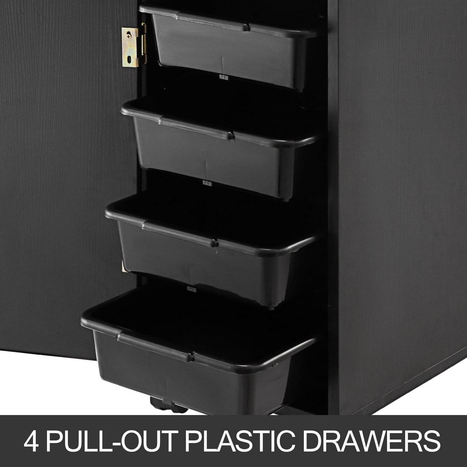 VEVOR Salon Beauty Trolley Rolling Cart Storage Salon Lockable Cabinet Trolley with 4 Drawers, Salon Storage Organizer Spa Equipment Black