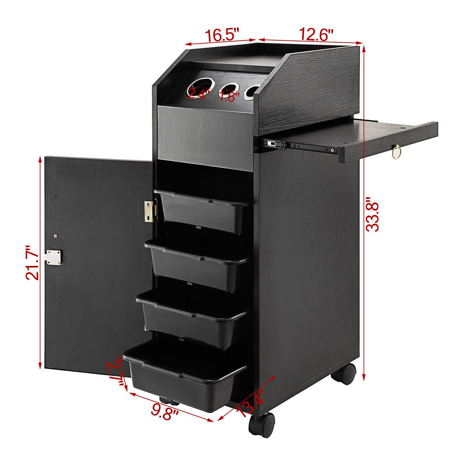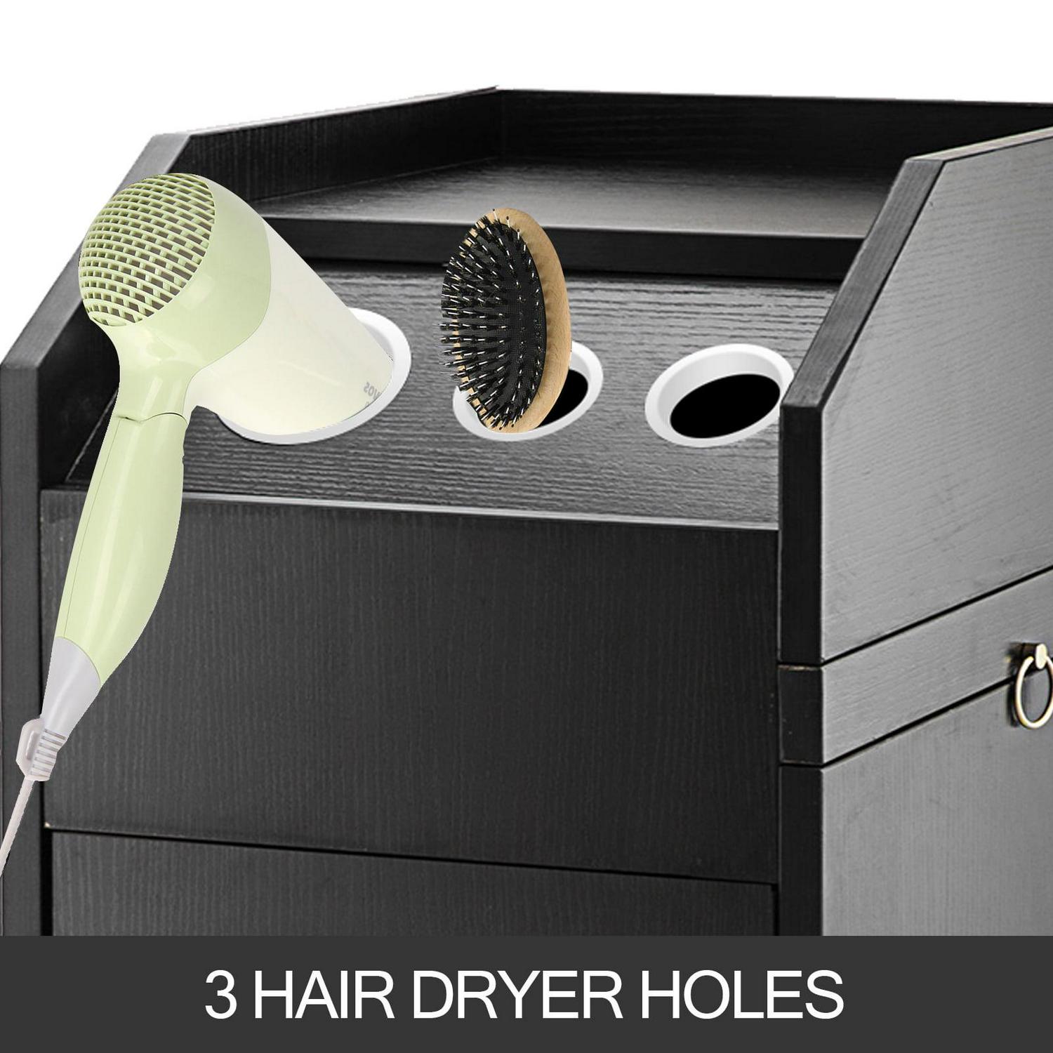 – LARGE STORAGE SPACE – This cart has 4 sliding drawers, 3 hair dryer holes and spacious top working area that provide expanded work surface. Side tray in the cart that can slide in and out provides a extension storage space.