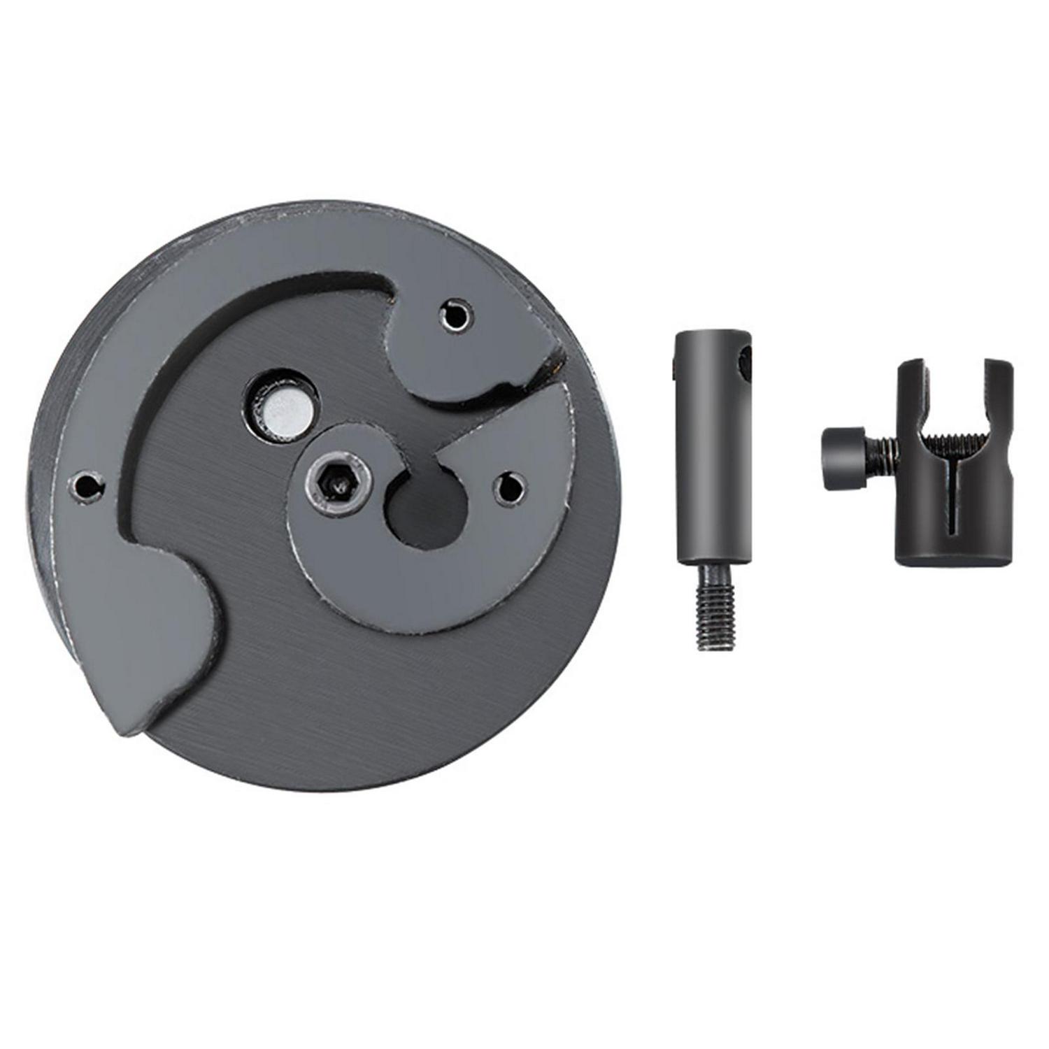 This multifunctional steel bender comes with three bending tools, including an angle bending tool, radius bending tool, and scroll bending tool.