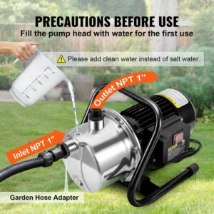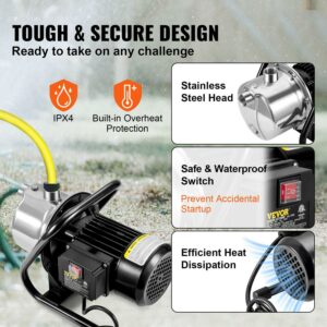 VEVOR Shallow Well Pump, 1.1 HP 115V, 978 GPH 131 ft Height, 69.6psi Max Pressure, Portable Stainless Steel Sprinkler Booster Jet Pumps for Garden Lawn Irrigation system, Lake Fountain, Water Transfer