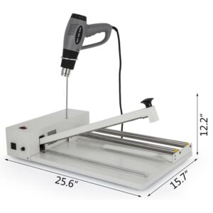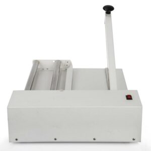 This heat shrink wrap machine has an excellent sealing effect with a lever, heating wires, and a silicone strip, easy to operate. It seals 18″ length and cuts automatically.