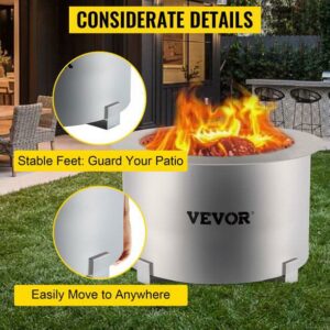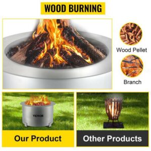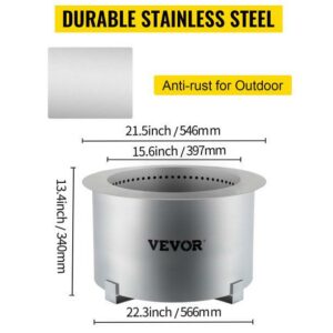 VEVOR Smokeless Fire Pit, Stainless Steel Stove Bonfire, Large 22 inch Diameter Wood Burning Fire Pit, Outdoor Stove Bonfire Fire Pit, Portable Smokeless Fire Bowl for Picnic Camping Backyard Silver