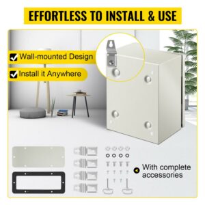 VEVOR Steel Electrical Box 10 x 8 x 6 Electrical Enclosure Box, Carbon Steel Hinged Junction Box, IP65 Weatherproof Metal Box, Wall-Mounted Electronic Equipment Enclosure Box with Mounting Plate