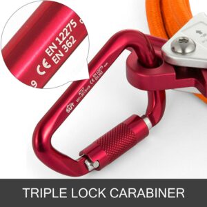 Strong lock carabiner with 3 Way locking to instantly lock and one hand to open. Keylock nose guards against snagging, easy to grasp shape. Max. Tension: 30 KN.