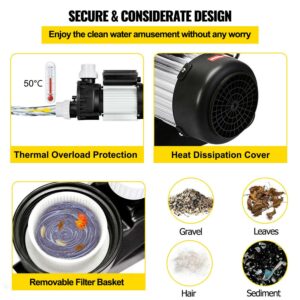 VEVOR Swimming Pool Pump 1/2 HP 110V Hot Tub Pump 0.37 KW Water Circulation Pool Pump Spa Pump Above Ground Pool and Whirlpool Bath