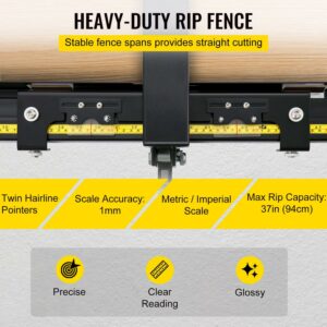 VEVOR Table Saw Fence System, 37 A 57 Classic Table Saw Fence Rail, Metric/Imperial Scale, Adjustable Hole Saw Fence System, w/ Front Guide Bar Table Saw Fence, Tablesaw Fence Slide for Easy Gliding