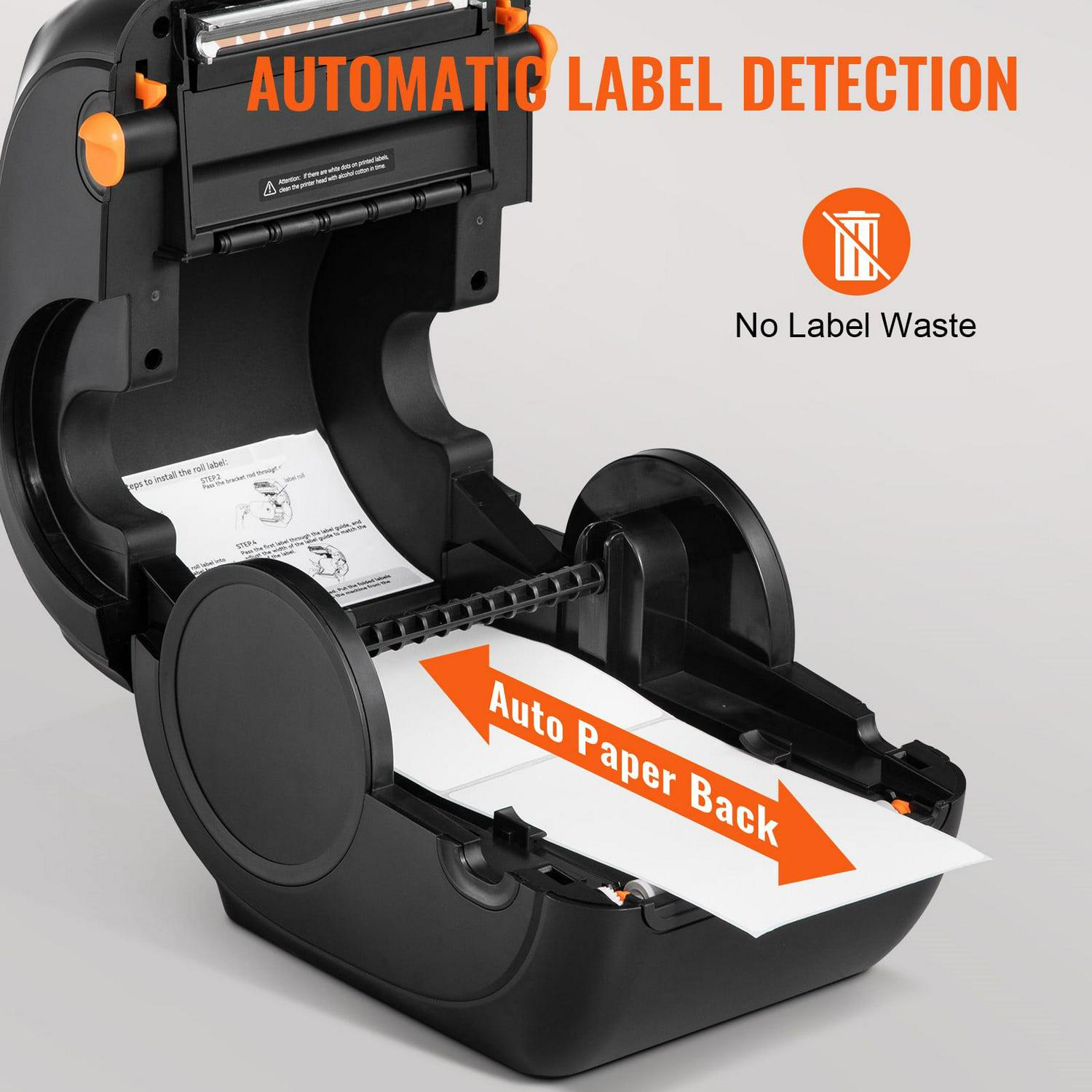 – Automatic Label Identification: This desktop label printer can catch the labels and feed them into the printer automatically. Just close the lid and insert the paper from the back of the printer, then watch as the machine identifies the labels effortlessly. Besides, it also features an automatic paper return function, which can return unsuitable labels and avoid wasting them. Start saving and improving with VEVOR.
