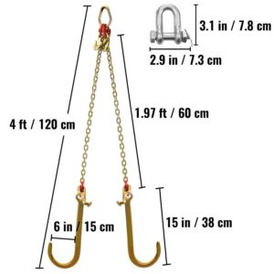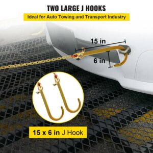VEVOR Tow Chain Bridle with 15in J Hooks, V Bridle Chain 5/16in x 2ft Grade 80 with Mini J and Crab Hooks, Heavy Duty J Hook Chain 9260lbs Break Strength
