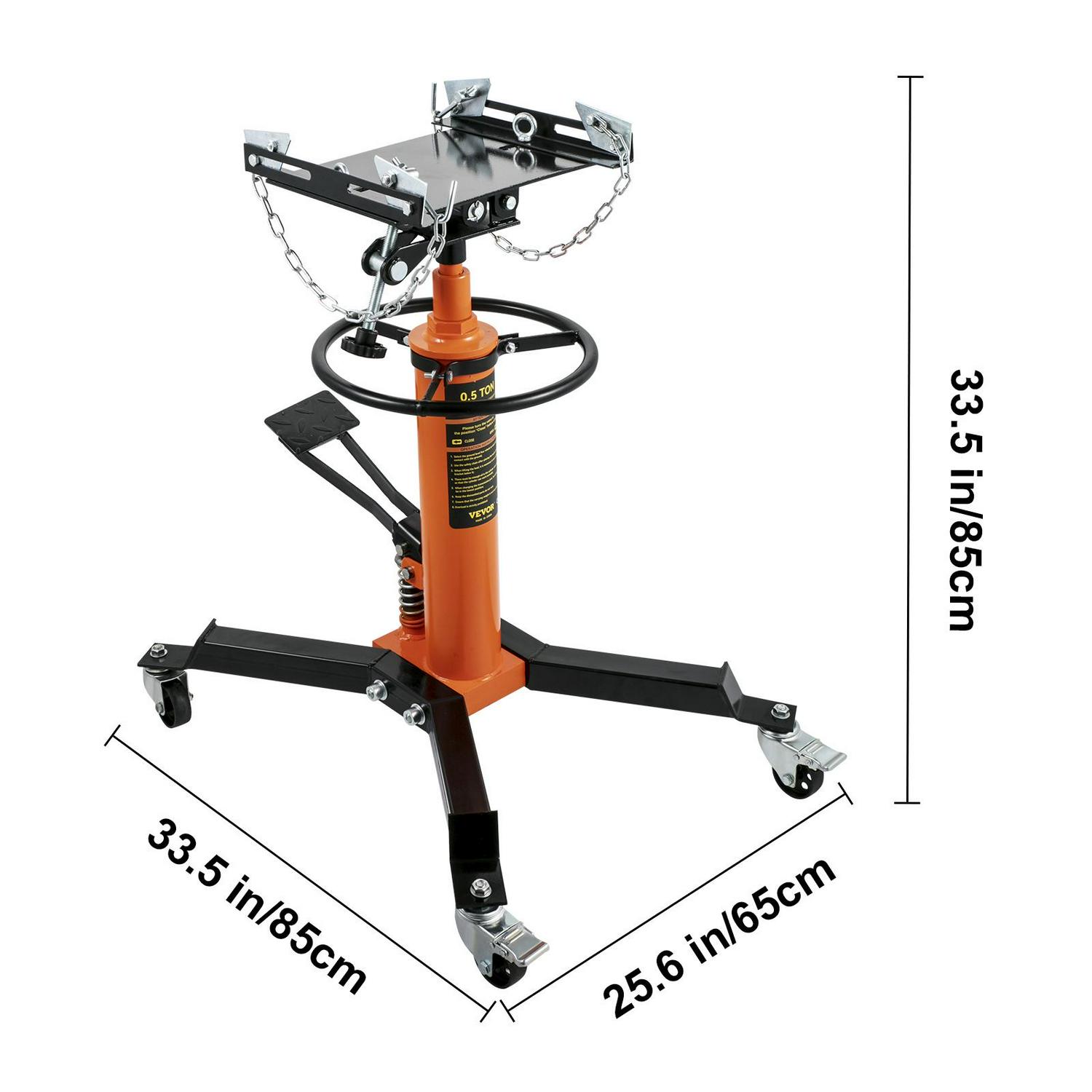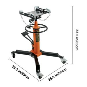 – 33-1/2″ -67″ Lifting Range: Enhanced hydraulic pressure for an extended lifting range, the pedestal transmission jack with a 33-1/2 inch to 67 inch lift range, our jack can lift your car to any suitable height. Comes with a foot-operated pedal, so it’s easier to rise, and free up your hands.