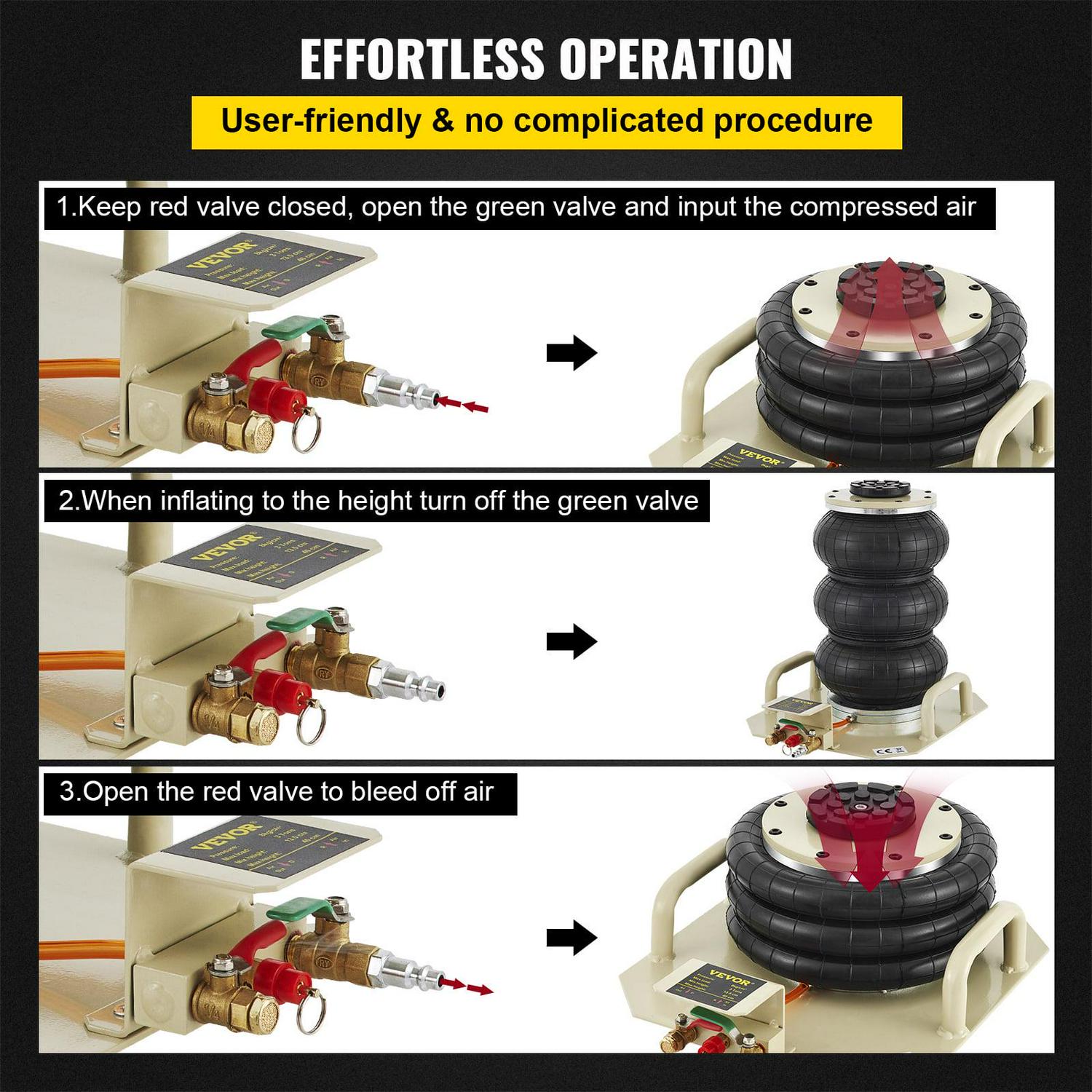 – EASY TO USE- Powerful and very fast to use. The triple bag jack is the easiest and fastest way to make the car lifted. It inflates with compressed air.