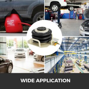 – HEAVY DUTY CONSTRUCTION- The pneumatic jack is made of high strength steel, the whole body is sturdy and durable. Larger stressed area, fits on soft and easy-collapsing place.