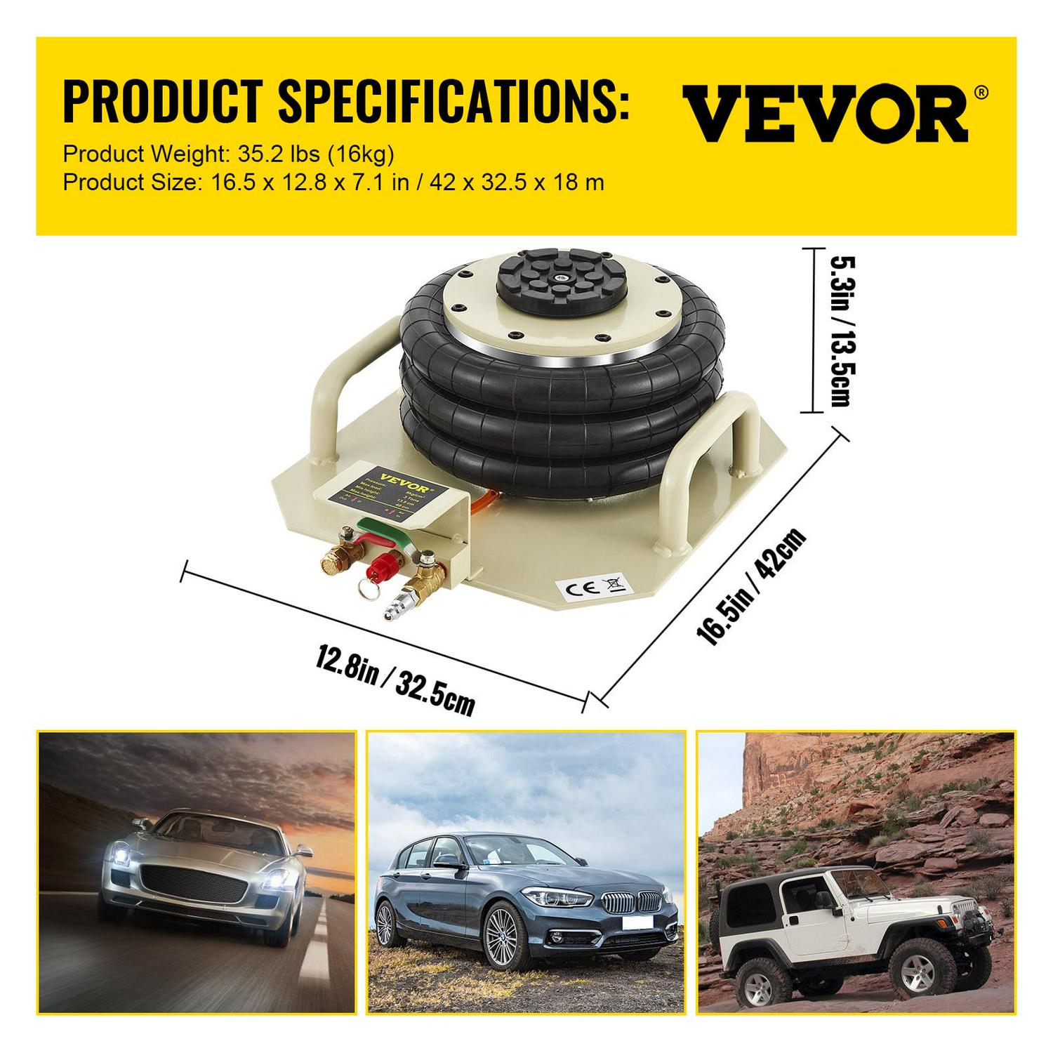 VEVOR Triple Bag Air Jack 3 Ton Pneumatic Car Jack 6600lbs Heavy Duty Air Jack Lifting Height Up To 16 Inch Adjustable