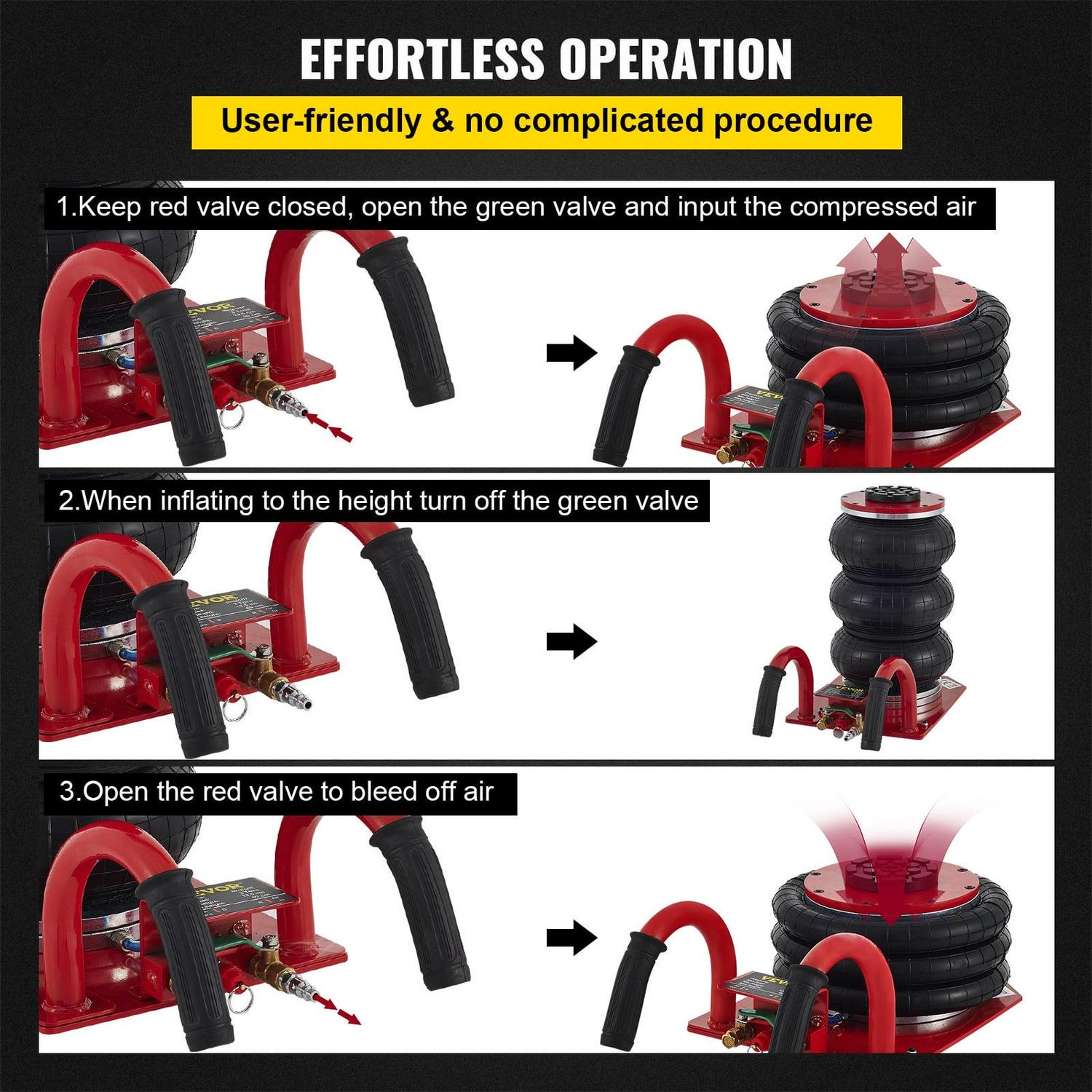 VEVOR Triple Bag Air jack 3 Ton Pneumatic Car Jack 6600lbs Heavy Duty Air Jack Lifting up to 16 inch Height (Red)