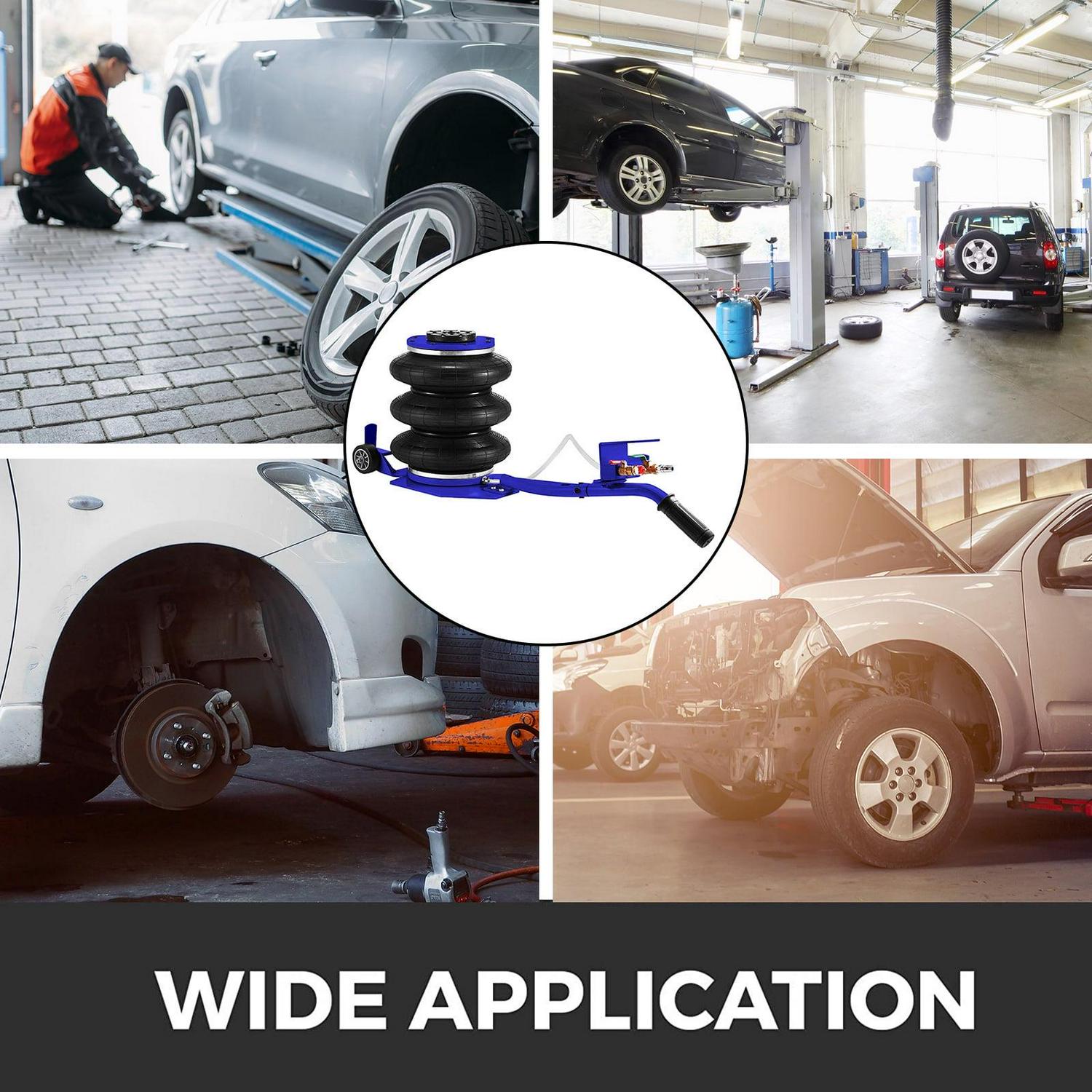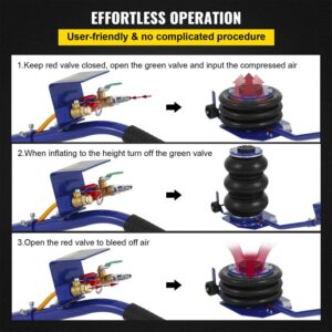 – EASY TO USE- Powerful and very fast to use. The triple bag jack is the easiest and fastest way to make the car lifted. It inflates with compressed air.