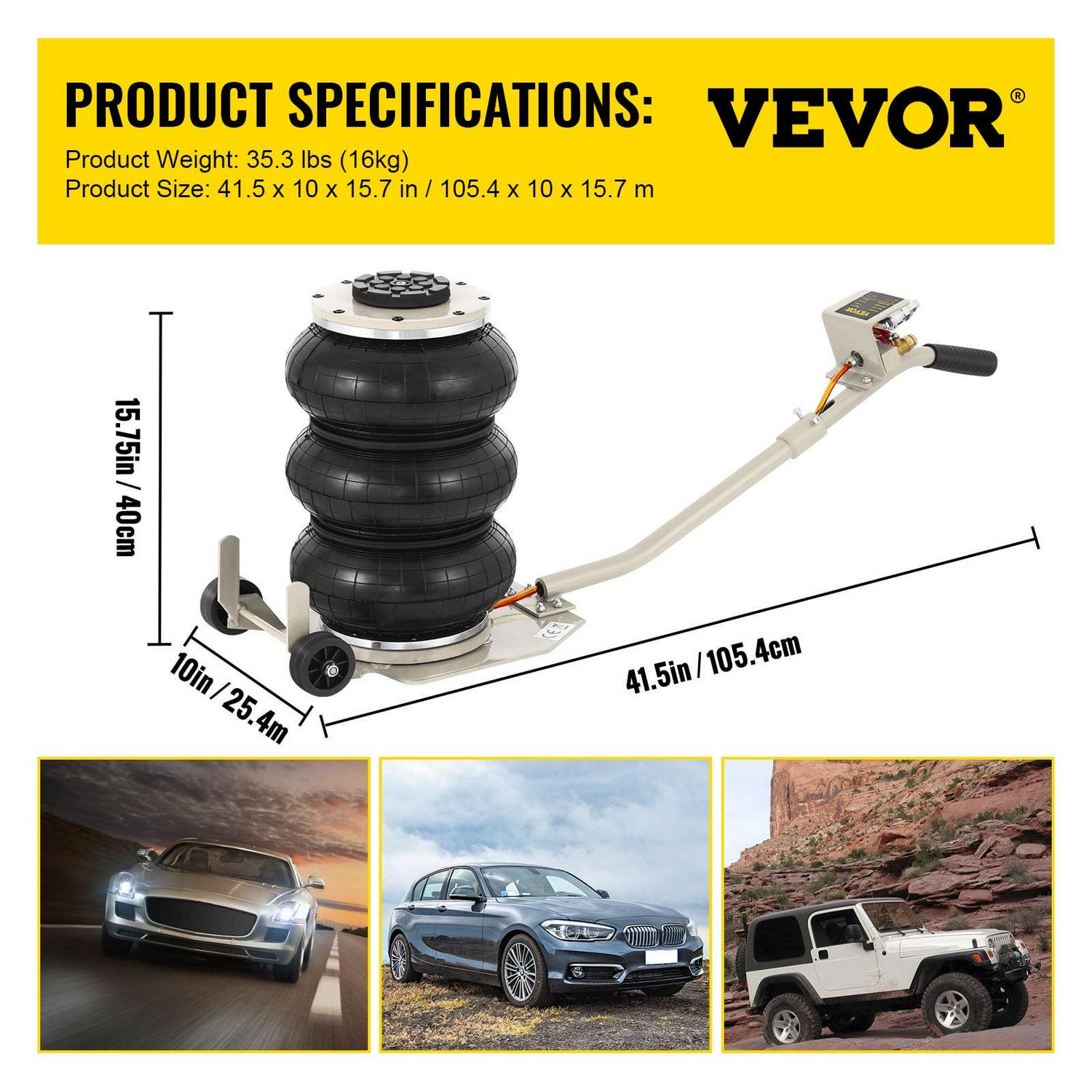 VEVOR Triple Bag Air Jack Lifting Height 16in and Pneumatic Air Jack with 3 Ton 6600 lbs. Capacity, Extremely Fast Lifting Action