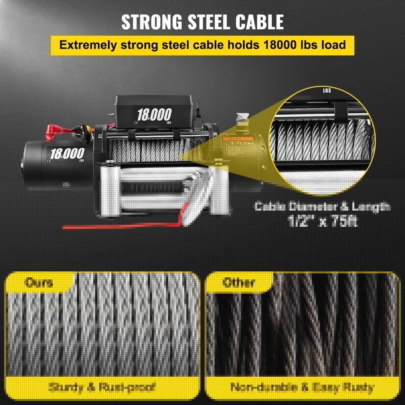 Upgraded Electric Truck Winch 18000Ibs with Durable 75ft Cable Steel