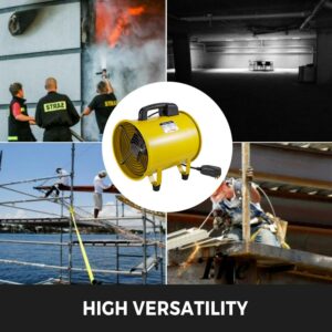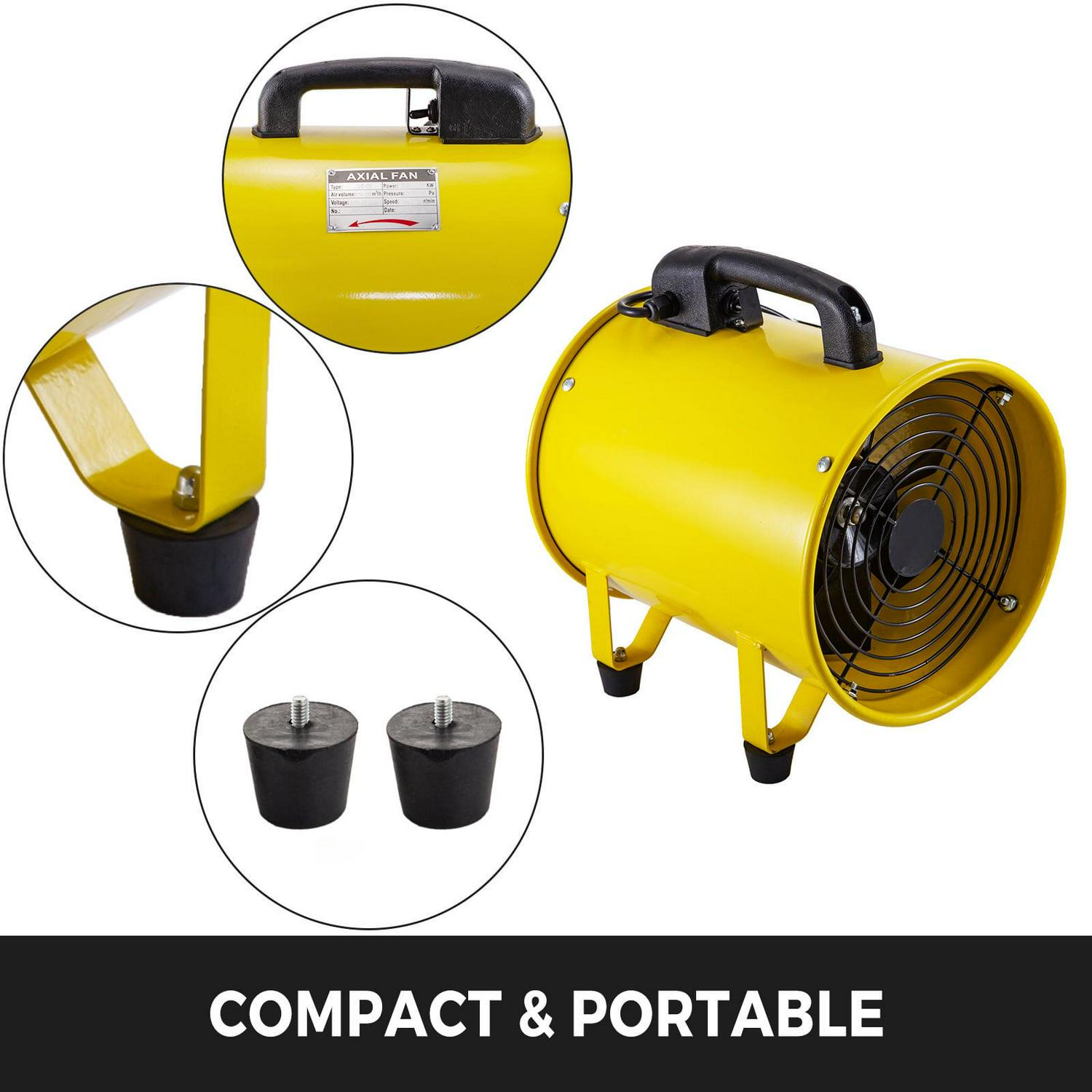 This 10 inches portable ventilation fan is the ideal fan for limited access areas in crawl spaces, attics, basements. It has a full-closed copper motor. Made of heavy-duty steel, compact with air volume 1750-2580 m³/h, portable with a handle, lightweight to carry and transport.