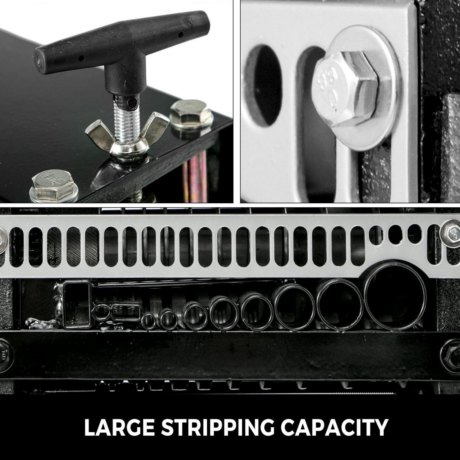 – MULTIPLE STRIPPING CHANNELS – Designed with 8 round holes and 2 flat stock cable cutting channels. Strips up to 1-1/2-inch wire (38 mm) round or flat scrap cable. Ergonomic hatchback design or adjusting two screws to feed wires in different.