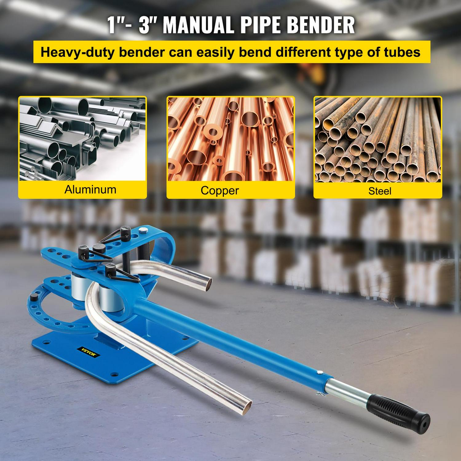 VEVOR YP-9 Manual Bench Top Compact Bender Pipe Bending Machine 7 Dies 1-3inch Metal Fabrication Tube Rod Pipe Bender 44ft Mount Powdercoat Telescoping Handle Maximum 5/8 Thick 1-15/16inch Width